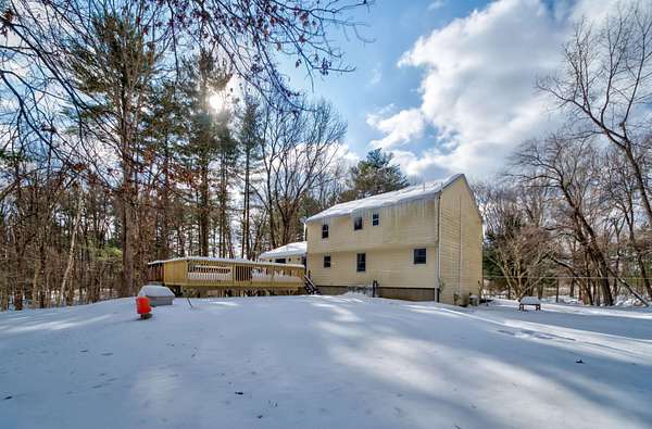 Welcome to this beautifully maintained Colonial nestled on a quiet cul-de-sac in one of Pelham’s desirable neighborhoods. Situated on a private 2.39-acre landscaped lot, this spacious home offers the perfect blend of comfort, privacy, and functionality. Featuring 3 bedrooms, 3 bathrooms, and over 2,400 square feet of living space, the home is designed for both everyday living and entertaining. The main level offers a spacious eat-in kitchen with stainless steel appliances and ample cabinet space, along with a formal dining room ideal for gatherings. The impressive family room features vaulted ceilings and a wet bar, creating a warm and inviting space for relaxing or hosting guests. Upstairs, the primary suite includes a private bath and walk-in closet, while two additional bedrooms provide plenty of room for family or guests. Step outside to enjoy the expansive deck overlooking a level backyard perfect for summer entertaining. A two-car garage and generous outdoor space complete this exceptional property. Tucked away for privacy yet conveniently located near local amenities and commuting routes this home offers the best of Pelham living.