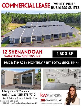 Welcome to White Pines Business Suites--where your business has room to grow! Just five minutes from Exit 12 near GlobalFoundries, this prime location offers versatility for contractors, warehouse/storage, office/flex use, and more. With only 3 units left, each at 1,500 SF (can be combined for larger SF), these spaces feature 14' overhead doors, soaring 16' ceilings, HVAC with optional AC, a half bath, and the ability to add loft space for even more functionality. Ample parking ensures convenience for you and your clients. Whether you're expanding, starting fresh, or need extra space, these units are designed to meet your needs. Don't miss out--these highly sought-after spaces won't last long. Call today for details and secure your unit before they're gone!