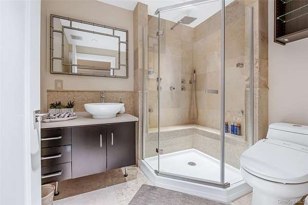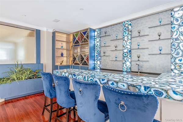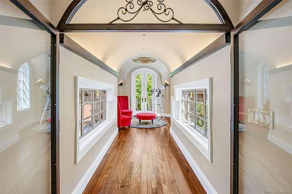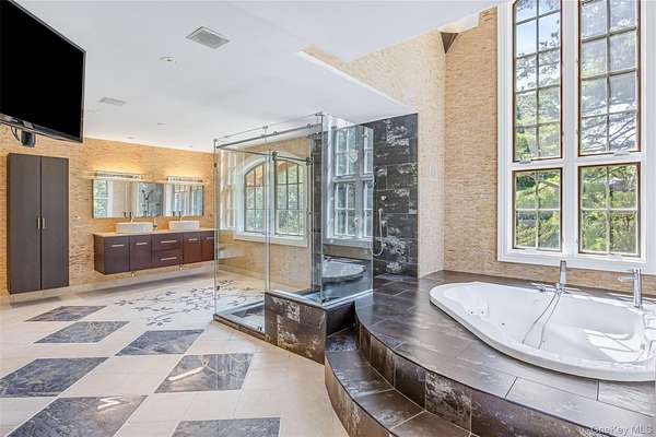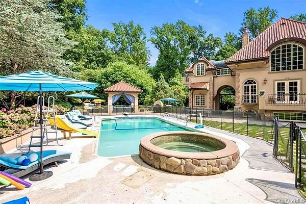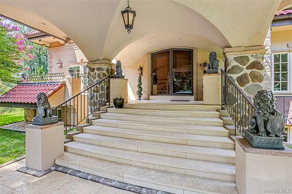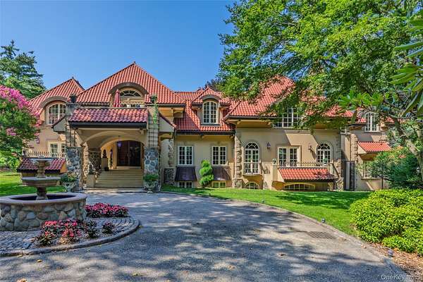 This exceptional Mediterranean-inspired estate is nestled within the exclusive Village of Sands Point. Rebuilt and expanded in 2001, it is a true symphony of timeless elegance and modern indulgence, crafted upon an all-steel and concrete framework for enduring strength. The stately exterior is graced with smooth stucco and crowned by a Ludowici clay tile roof, boasting a 75-year lifespan and spare tiles for future preservation. Bathed in natural light through more than 200 Pella windows, the residence offers sweeping, panoramic views from two rooftop terraces and six romantic balconies. Every aspect of this home is designed for a life of unparalleled comfort and prestige. A heated rear driveway, a resort-caliber outdoor spa with a heated inground pool, and an indoor heated resistance pool invite year-round leisure. Climate perfection is achieved through powerful central air in the main living areas, supplemental split units in bedrooms, gas-forced air heating, and radiant heated floors throughout. Elegant interiors showcase marble flooring in most rooms, warm hardwood in bedrooms, and bespoke architectural details-handrails, ceiling rims, and wall finishes enriched with gold, copper, and silver powder varnish. The property is further enhanced by cutting-edge conveniences, including a Lutron smart lighting system, a whole-house generator, an elevator servicing all levels, and a 400-amp electrical panel. Lower-level highlights - Sauna, steam rooms, full gym, home theatre, and game room - Guest bedroom, full bathroom, changing room for indoor pool - Workshop, plus 4-car garage First Floor Highlights: - Grand foyer with dramatic staircase, soaring great room open to the ceiling - Wet bar with natural blue agate - Formal dining room and eat-in kitchen, Family room - Two half bathrooms with onyx ceilings Second Floor Highlights: - Primary suite with two walk-in closets, spa-like bathroom with jacuzzi and laundry, staircase to roof terrace, and two balconies - Three additional bedrooms and two bathrooms - Refined Library - Skylit office (convertible to a sixth bedroom) - Tranquil stargazing room - Multiple balconies for private enjoyment Fully fenced and gated for privacy, this rare estate harmonizes resort-style amenities, breathtaking architecture, and impeccable craftsmanship-an unrivaled offering in the prestigious Village of Sands Point.