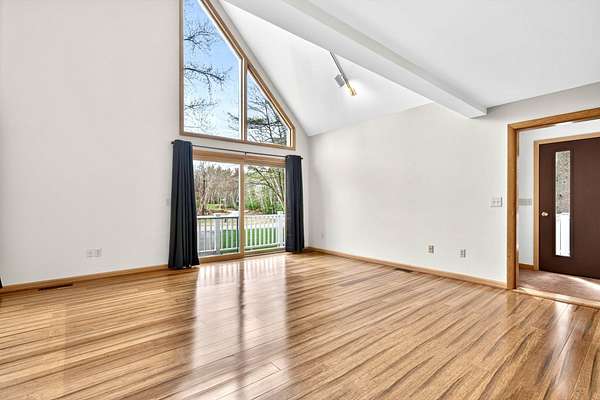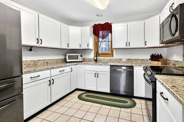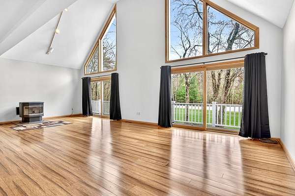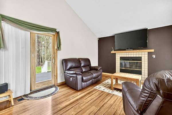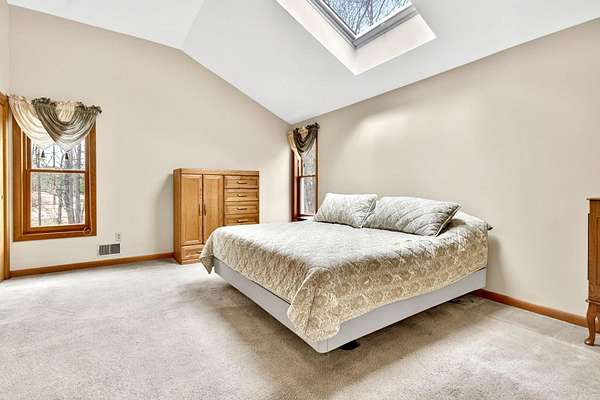A STUNNING LONDONDERRY CONTEMPORARY TO CALL. YOUR OWN! Welcome to this beautifully maintained home nestled on a quiet cul-de-sac, in highly sought after Londonderry, with easy access to shopping, dining, and major commuting routes. This inviting property offers the perfect blend of comfort, functionality, and New England charm. Step inside to discover a massive and thoughtfully designed interior featuring soaring cathedral ceilings with an exposed balcony to the second level, with expansive windows allowing for sun-filled living areas, gleaming floors, and a warm, welcoming atmosphere throughout. The open concept main level boasts a bright and open layout ideal for both everyday living and entertaining, with a generously sized living room equipped with a wood stove, flowing seamlessly into the family room, dining area and kitchen. The kitchen is well-appointed with ample cabinetry, plenty of counter space, and modern appliances. The cozy den is equipped with a gas fireplace and provides access to a private back deck, as well as front wrap-around deck, overlooking the beautifully landscaped yard. Additionally on the main level is a large bedroom, ideal for a sleeping area or a home office, and a 3/4 bathroom, complete with laundry area. Upstairs, the home features two large-sized bedrooms, including a primary en-suite complete with skylights, great closet space and easy access to a full bath with jacuzzi tub and shower stall. The lower level offers additional potential finished living space with great opportunity for a family room, gym, or workspace, along with convenient storage options. Outside, the property shines with a well-maintained yard, mature landscaping, and plenty of room for outdoor enjoyment. Additional highlights include a large 2-car garage, outdoor shed for storage, a chicken coop, and a location that combines neighborhood charm with commuter convenience—just minutes to I-93. DO NOT MISS THIS ABSOLUTE GEM!