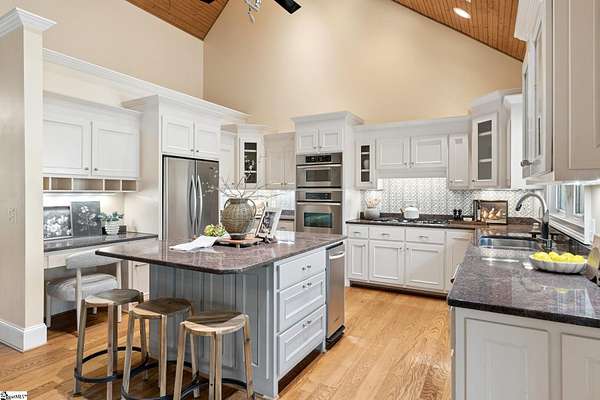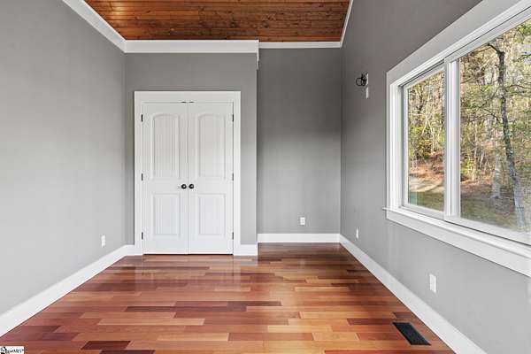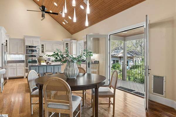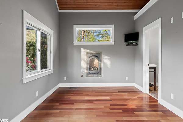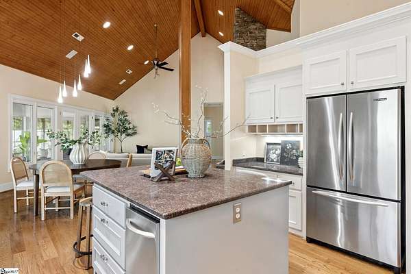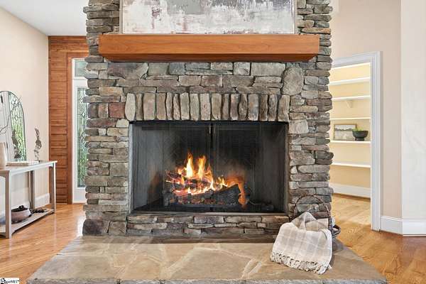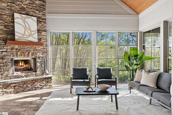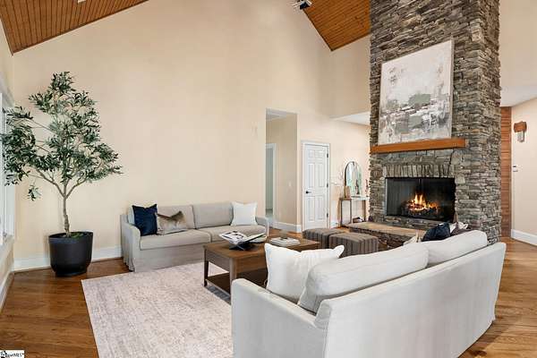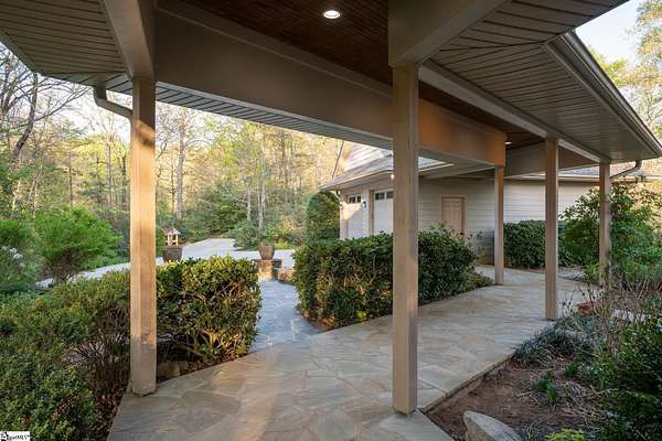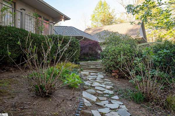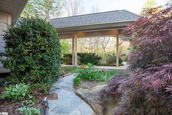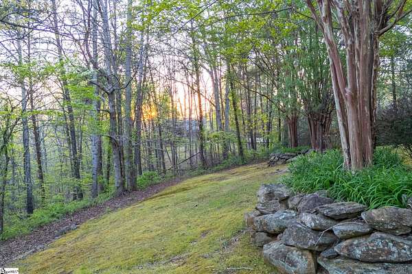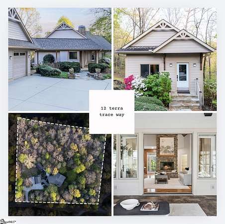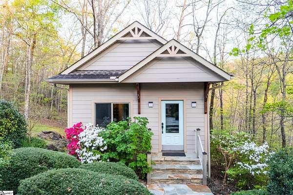 Stunning custom built, ONE STORY home AND SEPARATE GUEST COTTAGE/MULTI-GENERATIONAL addition, to include over 3 acres of natural wooded land located in the Blue Ridge escarpment(Travelers Rest foothills of the Blue Ridge Mountain range)! A world away from the hustle and bustle, but less than a 20 minute drive to downtown Travelers Rest! As you meander into the main home through the outdoor breezeway on the beautifully crafted stone paver walkway-you will be in awe of the beautiful surroundings of nature all around! Upon entering, you will be impressed by the magnificent stone, floor to ceiling gas fireplace to enjoy all year with the flip of a switch! You are certain to be impressed by the 28’ wood paneled ceiling living area! Enjoy countless hours of entertaining in the custom kitchen with large center island and ample cabinets throughout, along with a continuation of the stunning wood paneled cathedral ceiling! Large walk-in pantry is a huge plus for any extra storage needed. Primary bedroom will feel like a sanctuary with access to the back porch, allowing you to listen to the outdoor rock water fountain and quiet of nature. To add to your spa like experience-an incredibly mastered 9 1/2 foot long shower will not disappoint! To top off the primary bedroom experience you will appreciate the expansive custom closet with built-in storage. The outdoor closed in porch off one of the bedrooms, is perfectly positioned amongst the wooded lot and will be sure to delight you and friends and family all year! Additional space for extra dining and/or a flex room with a beautiful stone, gas fireplace is a perfect addition to your living space as well. The guest cottage is as adorable as it gets with its own private entrance! Stunning Brazilian hardwood flooring throughout, living area with small gas fireplace, kitchenette, as well as its own separate bedroom area is a must have for guests (careful -they may never want to leave!) as well as its own full bathroom with beautiful walk-in stone floor shower! Extra large driveway and added parking pad ads easeability while driving in and out of the property. Extra large 2 car detached garage blends seamlessly into the overall feel and design of the property! An invisible fence is already installed to encompass 2 acres of the over 3 acres of land for pets as needed. Enjoy the solitude and magnificent glory of this beautiful outdoor property with many different fruit trees, bearing fruit throughout the year-to include fig, apricot, apple, pear, peach,and plum! Schedule your showing today – this unbelievable property will definitely not last long!