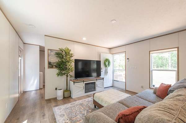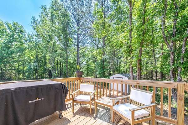 Wow, 5.86 acres of absolute privacy await you, offering many possibilities to create your own dream retreat, hobby farm, or simply enjoy the peaceful expanse of your own natural sanctuary! Nestled within this tranquil setting is a beautiful nearly new home built in late 2024 that perfectly blends modern design with the beauty of its surroundings! Inside, the home boasts a light-filled, open floor plan that flows seamlessly from the living room into the kitchen equipped with a range, dishwasher, refrigerator, all centered around a long snack bar perfect for dining! The owner's suite serves as a serene sanctuary, complete with a private bathroom featuring a soaking tub and a separate shower! The additional guest bedroom and nearby full bathroom ensure plenty of space for visitors! Practical details such as a dedicated laundry room add to the home's effortless flow! The outdoor experience is just as impressive; a charming pebble stone walkway leads you to the front door, while the back deck provides the perfect vantage point for overlooking your vast, private backyard! Enhanced with newly established grass and a convenient storage building, this move-in-ready property offers the ultimate combination of contemporary comfort and the endless potential of your own sprawling acreage! Just a short 5 minute drive to Edgefield town square with local shops, restaurants, and so much more!