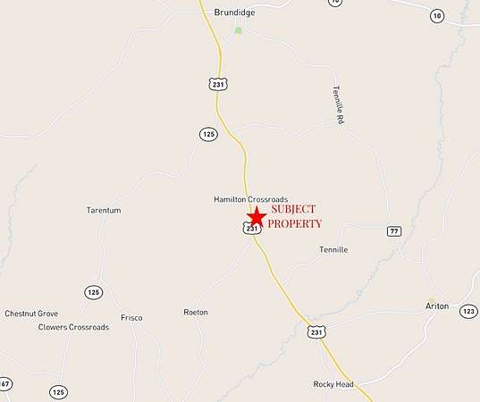 From Brundidge, travel approximately 5.2 miles. Pass through Hamilton Crossroads, and the property will be on your left.