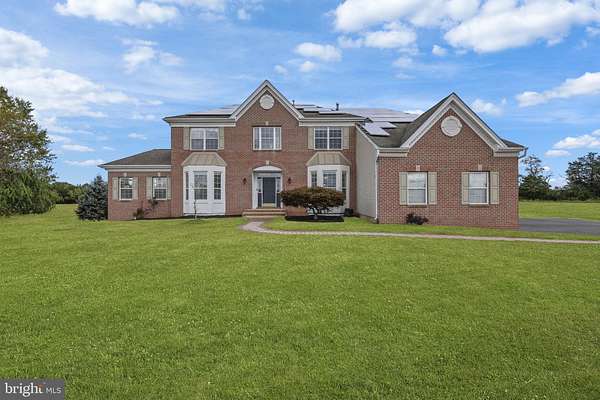 On a quiet street, surrounded by sweeping green acreage, this classic brick-front colonial home awaits its next owner with privacy, presence, and an undeniable sense of promise. Large in all the right ways, this residence offers a rare opportunity to reimagine a spacious property that feels more like a private park than a backyard. Whether you're looking for room to grow, entertain, or simply enjoy peaceful surroundings, this home delivers. The welcoming entry opens into a cozy sitting area with cathedral ceilings, filling the space with natural light and a sense of airy openness. Timeless hardwood floors run throughout. The bright, dine-in kitchen features a breakfast bar, modern upgraded appliances and fixtures, and a sunlit dinette surrounded by windows. A sliding door opens onto a large deck and a truly stunning backyard-perfect for entertaining, gardening, or enjoying quiet mornings. The view from the kitchen sink might even make dishwashing enjoyable! Just off the kitchen, you'll find a walk-in pantry and a well-designed mudroom with laundry, and access to the 3-car garage. Both formal and informal living and dining spaces offer flexible layout options for modern living. A dedicated first-floor office, currently used as a bedroom, provides valuable flexibility for guests, or work-from-home arrangements. Upstairs, four generously sized bedrooms offer ample room for every stage of life. The primary suite includes its own private bath and his-and-her walk-in closets. A large basement provides even more potential-perfect for a home gym, recreation room, studio, or additional living space. Located in the highly regarded Franklin Township School District, with access to award-winning charter and magnet schools, this home is also just minutes from the Delaware & Raritan Canal State Park, Six Mile Run Reservoir, and major commuter routes like Route 27, Route 1, and NJ Transit stations-offering easy access to Princeton, New Brunswick, and NYC. Designed with energy efficiency in mind, the home features semi-solar heating, large south-facing windows for passive warmth, excellent thermal insulation, and a planned air-circulation system for natural heating and cooling. A central fireplace and chimney offer cozy, wood-fired comfort in the cooler months, and the open-plan layout ensures a seamless natural flow throughout the main living spaces. This solidly built, energy-efficient brick-front colonial combines timeless design with modern updates and sits on a breathtaking 3.37-acre lot. It's a rare find in a coveted location-ready to welcome your vision and your future.