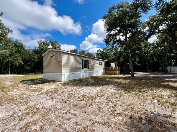 Enjoy country living with this well-maintained, 2021 mobile home situated on a beautiful 2-acre lot. This move-in-ready home features a modern open floor plan, a spacious kitchen with a large center island, and a cozy living area filled with natural light and a beautiful built-in entertainment center. The primary suite offers a private bath and a large walk-in shower, while additional bedrooms provide flexibility for guests or a home office. Outside you will find a newly built 22x25 pole barn workshop area. This property offers plenty of space to enjoy nature, start a garden, and bring your animals. Experience the perfect blend of privacy and convenience, located off a paved road and just a short drive to local restaurants, and stores. Don't miss this opportunity to own your slice of rural paradise!