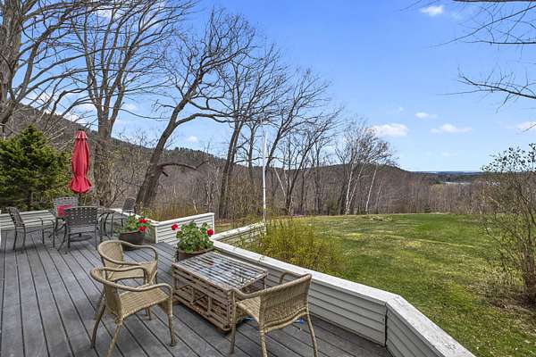 Pleasant View Farm is a lovingly restored 1800s Cape style home aptly named for its scenic views across field and tree tops to Penobscot Bay and the islands with seasonal glimpses of Hosmer Pond. Pleasant View Farm is rich with the traditional warmth, character, and charm, one expects from this era, yet modernized for today's living. The welcoming first floor features a southerly facing primary bedroom ensuite full bathroom with soaking tub, shower and walk in closet with stunning views. There is a large eat-in kitchen has with a vaulted ceiling with sklylights, large windows for plants, and wood cook stove, and abutting formal dining room. The living room showcases a fireplace flanked by built-in bookshelves, with a cleverly hidden room tucked just beyond accessed by a secret bookshelf door. There is also a family room with bookshelves and views, and and a half bath highlighted by a 100-year-old stained-glass window.Upstairs there are three additional bedrooms and a full bath with tub and shower. The attached barn provides the possibility to reclaim its history and offers potential abundant space for projects, hobbies, and storage. There is also an attached two-car garage. A spacious deck provides the perfect setting for entertaining or simply enjoying the breathtaking views. Sauna and hot tub complete the experience. Cedar-fenced yards surround the home, along with established perennial gardens, stately oak trees, majestic birch, and blooming lupine. Pleasant View Farm is conveniently located just a few miles from downtown Camden, and close to area amenities. Ragged Mountain and Bald Mountain are practically in your backyard, while the Camden Snow Bowl, Hosmer Pond, town recreation fields, and tennis courts are only a half mile away.