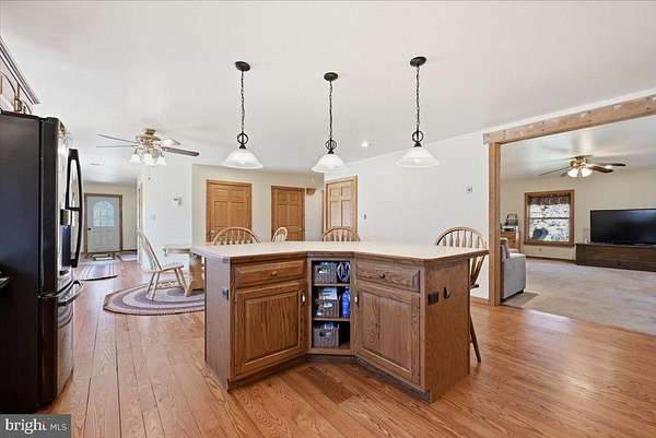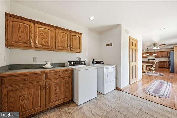 Experience the rare opportunity to own a 50-acre estate that seamlessly blends refined living, unmatched privacy, and exceptional agricultural potential. From the moment you arrive, this property delivers a sense of grandeur and tranquility that is increasingly hard to find. The main residence has been thoughtfully updated with new hardwood flooring throughout the first floor and staircase, complemented by freshly painted interiors that create a bright, sophisticated atmosphere. The main level is designed for both comfort and entertaining, featuring a spacious kitchen, inviting living room, elegant dining area, and a versatile bonus room-all centered around a warm, beautifully appointed fireplace. The first-floor primary suite offers a serene private retreat with its own bath, while the upper level provides three additional bedrooms, a full bath, a flexible loft space, and convenient attic storage. The lower level is a standout, offering radiant heated floors, a second fireplace, and plumbing already in place for an additional bathroom. Whether envisioned as a luxury entertainment area, guest suite, or expanded living quarters, this space is primed for customization. Radiant heat also extends into the garage, ensuring year-round comfort. Perfect for multi-generational living or hosting long-term guests, the property includes a private in-law suite with its own entrance, complete with a bedroom, full bath, kitchen, and dining area. Outdoor living is equally impressive. A charming wraparound porch captures sweeping views of the rolling landscape, offering the ideal vantage point to enjoy sunrise, sunset, and everything in between. With zoning that supports both residential and agricultural use, the possibilities are endless-equestrian pursuits, farming, hobby agriculture, or simply embracing the peace and beauty of an expansive estate lifestyle. This extraordinary property delivers the space, flexibility, and luxury rarely found in one offering. A true sanctuary for those seeking elevated living with limitless potential.