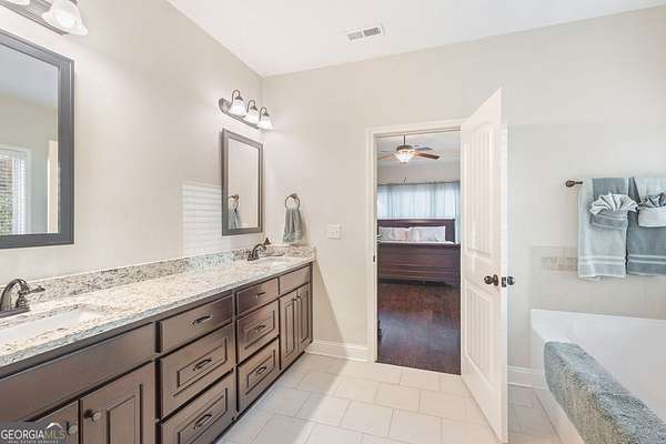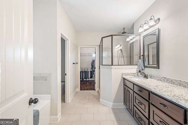 - Double Vanity, Entrance Foyer, High Ceilings, Master On Main Level, Separate Shower, Soaking Tub, Split Bedroom Plan, Tile Bath, Tray Ceiling(s), Walk-In Closet(s)