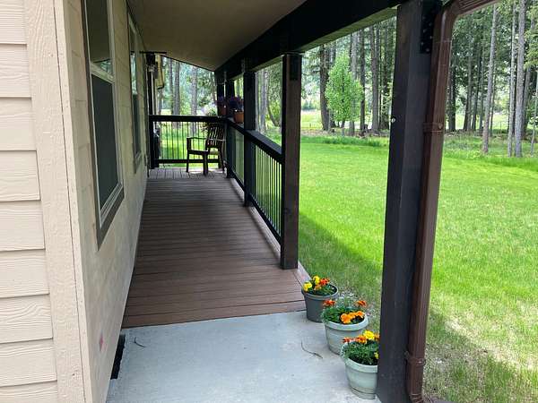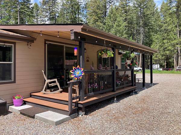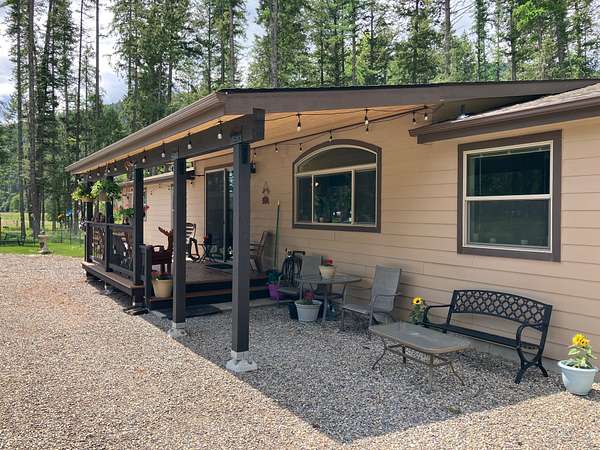 On the edge of one of Libby's most desirable neighborhoods sits this perfect blend of serenity and versatility. This like new 2019 three bedroom two bathroom home is move-in ready and has the perfect color palette that blends in with the earth tones of the surrounding forest. The home has an expansive open concept design and the vaulted ceilings and large viewing windows allow light to pour in from both sides of the home. A well thought out layout, this home has a large living room upon entry, but also a separate activity room at the south end of the home, allowing for simultaneous entertainment or perhaps that quiet area that calms the soul. The layout also has the very desirable split styling with the master bedroom and bathroom on one side of the home and the guest bedrooms on the opposite side of the living, dining, and kitchen area. With a spacious single level living and entertaining area, and a well proportioned covered back porch, summer nights with friends and family will be a pleasure. The home sits the perfect distance off of Bothman Drive, giving it visibility, but still is moderately screened by a tasteful quantity of mature conifers. Speaking of the frontage road, this neighborhood is great for evening walks and you'll be stunned by the beauty of the nearby pasture type land and the peak-through views of the Kootenai River. You'll be ready for those summer guests with a 30amp RV plug near the front of the property, and additional power available near the well head. The owner of this property thought ahead and split the nearly five acres into to two separate parcels, allowing for many different possibilities. You could keep everything together and perhaps construct some ancillary buildings for livestock animals with the recently logged back portion of the lot already producing lots of native grasses. You could live the family compound dream and have a relative construct a residence on the second lot, and share the water well, which was strategically placed right next to the border of the second lot to make that option as easy as possible. Or you could purchase the whole property and sell the second lot off, resulting in an excellent overall net value on the 2.1 acres and with the home. Regardless of your desires, this property is ready to accomodate!