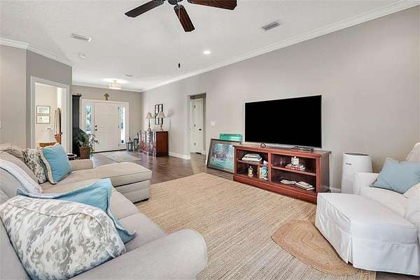 - Ceiling Fans, Formal Dining, Foyer, Great Room, Recessed Lighting, Shelving, Split Bedrooms, w/ Connection