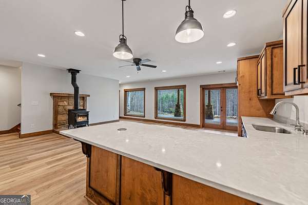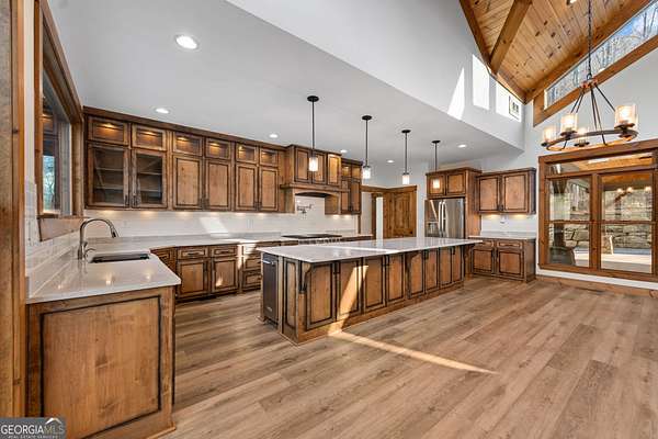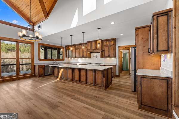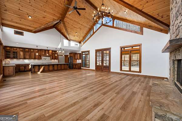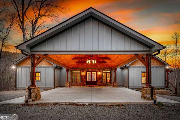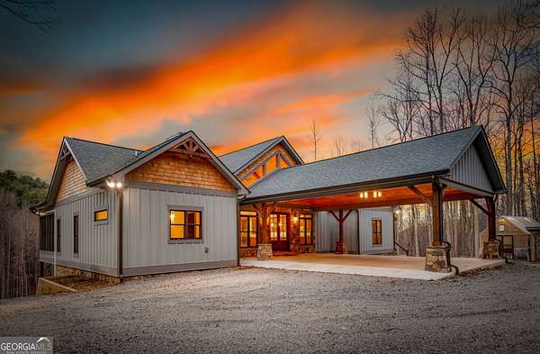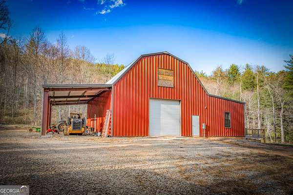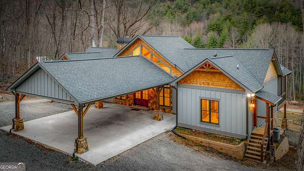 Discover a rare opportunity to own a Craftsman Style Home built in 2023 on 78.96 ACRES in the mountains of Blue Ridge, GA featuring Mountain Views, Higdon Creek frontage, a private pond, large metal building, and direct borders with U.S. FOREST SERVICE LAND-creating exceptional privacy and endless opportunities for outdoor adventure. This thoughtfully designed home offers 3 bedrooms and 3 bathrooms with a flexible layout perfect for multi-generational living, guests, or rental potential. With two kitchens, this home provides convenience and versatility whether you're hosting family, entertaining friends, or creating a separate living space. Inside, you'll find comfortable living areas that flow seamlessly to the outdoors where the beauty of the mountains truly shines. Enjoy peaceful mornings and sunset views from the expansive deck overlooking the mountain scenery or relax and entertain on the large patio below. This property is equally impressive outside with features designed for both function and recreation. Drive-through carport and circular driveway for easy access. Huge metal building/barn ideal for equipment, farming, hobbies, workshop space, or storage. Unfinished apartment located in metal building. Private pond perfect for relaxing or enjoying nature. Higdon Creek flowing through the property. Borders U.S. Forest Service land for unmatched privacy and direct access to thousands of acres! With nearly 79 acres of mountain land, this property offers endless possibilities-whether you're dreaming of a private mountain estate, family compound, homestead, recreational retreat, or investment property. Tucked away in a secluded setting yet within driving distance of downtown Blue Ridge, you'll enjoy the perfect balance of peaceful mountain living and convenient access to dining, shopping, hiking, and outdoor adventures.