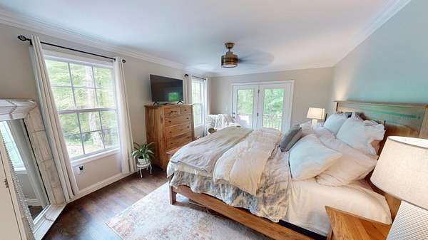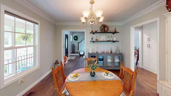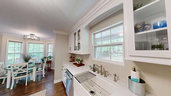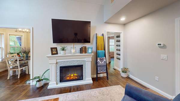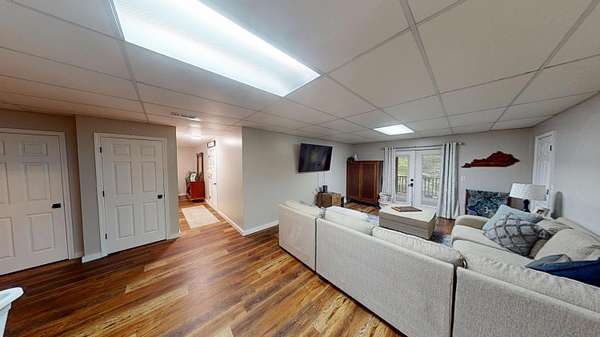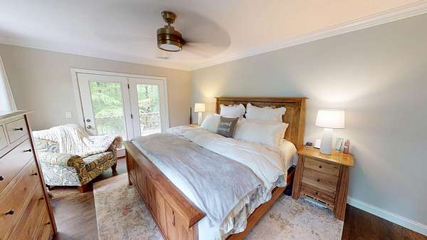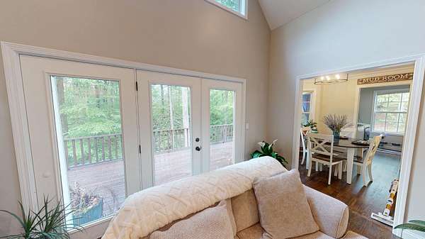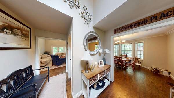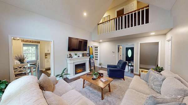 Motivated Sellers! Nestled on nearly 2 private acres, this beautifully updated 3-bedroom, 3.5-bath home offers modern comfort just moments from the lake. Enjoy seasonal lake views from the expansive wraparound porch and large back deck, ideal for relaxing or entertaining year-round or enjoying nature. The interior boasts hardwood floors, a stunning modern kitchen with premium finishes, and spacious living areas filled with natural light. The main level also features a sought-after primary bedroom with an en-suite bath, offering convenience and privacy. The fully finished basement features a versatile bonus room and cozy den, ideal for guests, a home office, or a media room. A spacious garage, contemporary updates throughout, and serene privacy make this home a rare find. Whether you're looking for a year-round residence or a seasonal escape, this property offers the best of both worlds-convenience and tranquility