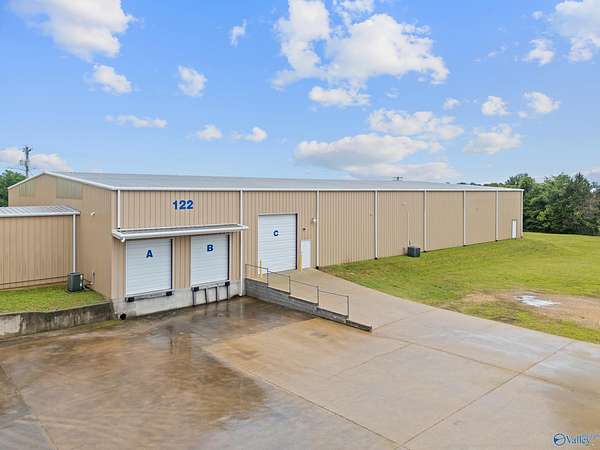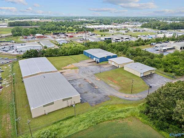 This unique +-5.acre M-1 zoned industrial site offers +-57,817 SF across five versatile buildings, ideal for distribution,manufacturing, warehousing and light production from +-5,172 SF to +-17,091 SF, featuring multiple loading docks, roll-up doors, a covered tunnel (120 & 122) and functional office space. Strategically positioned off US Hwy 72 an hour from Huntsville, US Hwy 65, five minutes to the NW AL Regional Airport; centered within a 500-mile radius of major markets like Birmingham, Nashville, Memphis and Atlanta.
