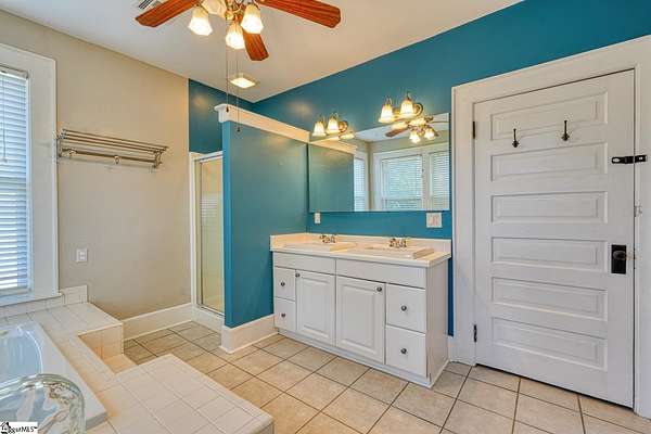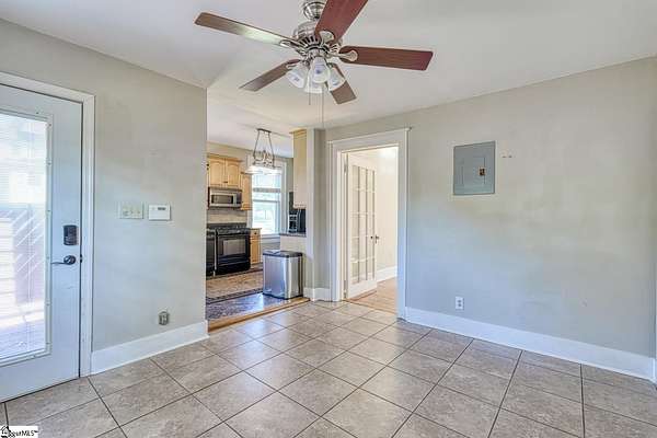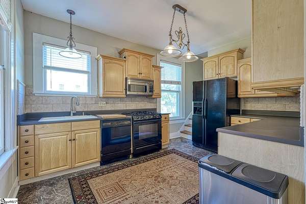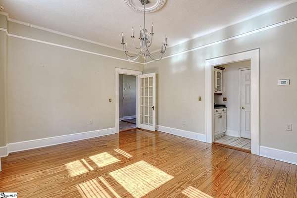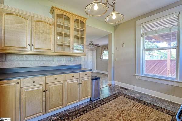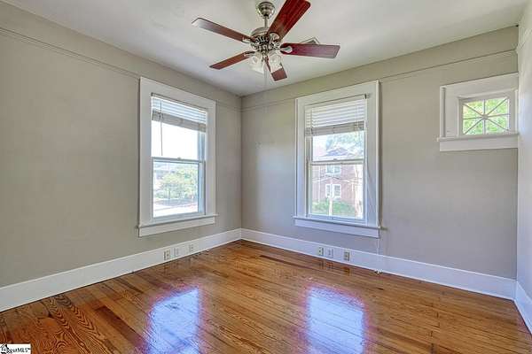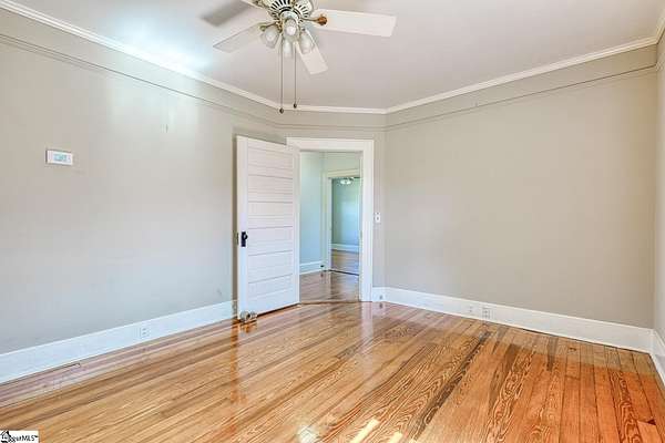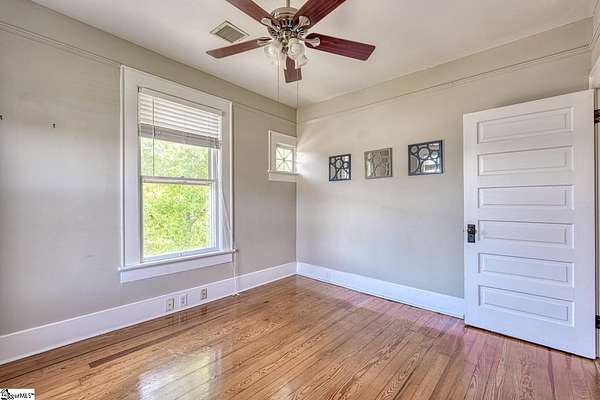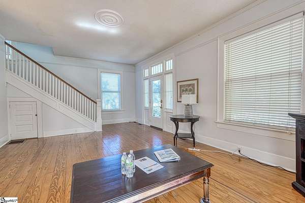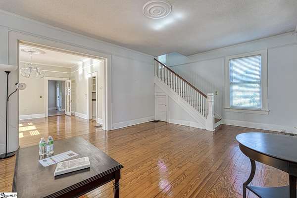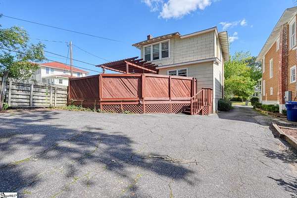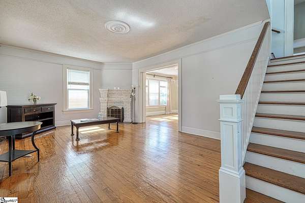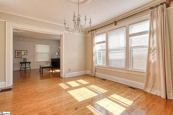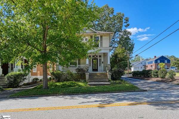 Welcome to Prestigious Converse Heights -- home to tree-lined, sidewalk streets and a true sense of community where neighbors still wave as they pass by. This charming 1925 home has stood the test of time and offers classic character blended with modern comfort, all within walking distance to Happy Hollow Park and just minutes from downtown Spartanburg -- home of the Spartanburgers Baseball Team. Enjoy close proximity to award-winning schools, boutiques, fine dining, the library, and more. The inviting front porch is perfect for a swing or a set of rocking chairs, where you can enjoy the peaceful surroundings and friendly neighborhood charm. Don't miss the original crank doorbell on the front door -- a delightful nod to the home's history. Step inside to discover beautiful hardwood floors throughout the main living and dining areas, enhanced by 12-foot ceilings that make each room feel even more spacious. The natural gas fireplace creates a cozy atmosphere for cool fall evenings, while abundant natural light and decorative ceiling medallions add timeless elegance. A half bath with a pedestal sink is conveniently located off the dining room, next to the butler's pantry complete with sink. The morning room makes an ideal spot for your first cup of coffee or a cozy breakfast nook, and includes both a laundry closet and a walk-in pantry/storage area with built-in organizational shelving. The kitchen is practical and full of character, featuring wood cabinets with display doors, a lazy Susan, and ceramic tile flooring. Dual staircases -- one from the kitchen and one from the living room -- lead upstairs, where you'll find the spacious master suite with a walk-in closet, ensuite bath with dual sinks, jetted tub, separate shower, and linen closet. Two additional bedrooms, each filled with natural light, share a full bath with a jetted tub/shower combination. The unfinished basement offers excellent potential for a workshop, home gym, or additional living space--ready for your personal touch. Additional features include crown molding, wide baseboards, dimmer switches, under-stair storage, ceiling fans in every bedroom, and a mix of gold and crystal doorknobs that reflect the home's vintage charm. The large private deck out back provides the perfect space for entertaining or quiet evenings outdoors.