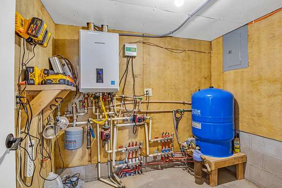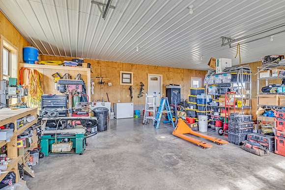 This property also includes a cozy and modern 3 bedroom, 2 bathroom, 1,250 square foot home with a 432 square foot, covered deck, and a 1,008 square foot attached 2+ car garage with a 1/4 bathroom. The entire home and garage feature in-floor heat and a wood stove for additional warmth.
