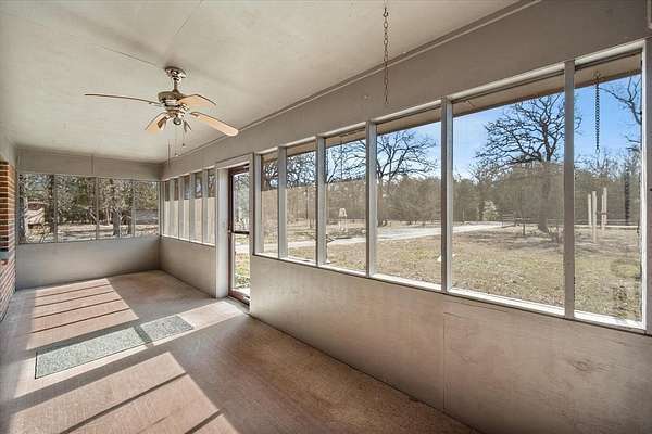 Nestled on 5.01 peaceful acres in Fairfield, Texas, this charming 2-bedroom, 2-bath home offers 1,385 square feet of comfortable living surrounded by mature trees and frequent deer sightings. The interior features a mix of laminate, tile, and carpet flooring, creating a warm and functional layout. The kitchen includes a convenient pantry, while the living room is anchored by a cozy wood-burning stove, perfect for relaxing evenings. Enjoy the outdoors year-round from both the front and back enclosed screened porches, ideal for morning coffee or quiet sunsets. The home is topped with a 4-year-old shingle roof, providing peace of mind for years to come. This property truly shines with its abundance of outbuildings, all thoughtfully equipped for a variety of uses. Features include a pole barn, a screened outbuilding with electricity, a storage shed housing the well water tank, a two-car garage with electricity, a workshop with extensive shelving and electricity, and a small lean-to barn with electricity. A beautifully landscaped area with established perennials adds to the property's charm. For RV owners, the property is fully equipped with a 50-amp RV hookup and a separate septic system dedicated to the RV, offering excellent flexibility for guests or travel living. Located in a quiet, serene setting, this property is perfect for those seeking space, functionality, and a true country lifestyle while remaining convenient to Fairfield. A rare find with endless possibilities.
