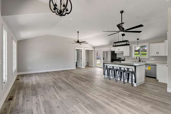 This stunning ranch-style home has been completely renovated from the studs out, offering modern comfort with timeless charm. Featuring an open-concept floor plan, the kitchen, dining area, and great room seamlessly flow together, creating an ideal space for both everyday living and entertaining.