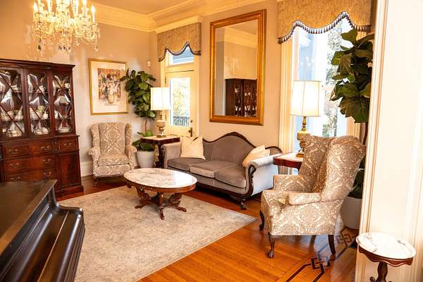 The O'Donnell House a Neoclassical Mansion serving as a home & as an event venue. First level: The Ballroom is apx 2,000 sqft, has Swarovski crystal chandeliers, marble tile flooring, a large dance floor, elevated stage for a DJ, band, or presentation. With state-of-the-art A/V equipment including a drop-down screen, LCD projector, house sound system, microphones, etc. Original hardwood floors, crown molding, antique furniture, and tons of character abound the various rooms on the First level, including the cake room, piano room, East parlor, West Parlor, Bridal suite, Formal Dining room, owners kitchen, commercial kitchen, rest rooms, office, & storage. Second Level: 4 bedrooms with 4 full baths, owners den. Third Level: is partially finished for additional living space. This sought after wedding venue and bed and breakfast is owner/occupant managed. The workshop has 3600sqft of amazing storage and garage spaces! Apx 70 parking spaces all on over 2 acres in the heart of downtown Sumter, SC! Please visit the website for more details and photos.