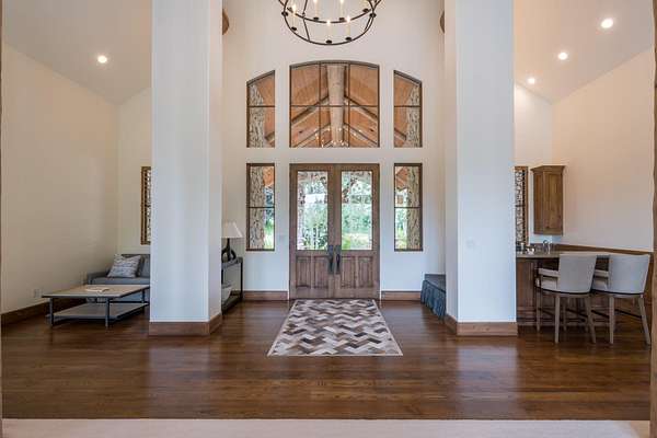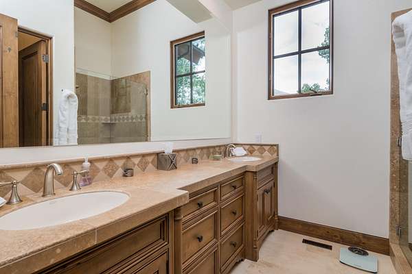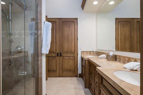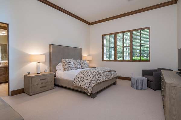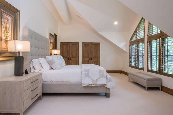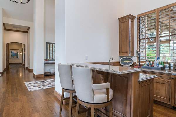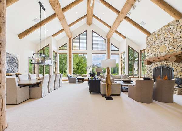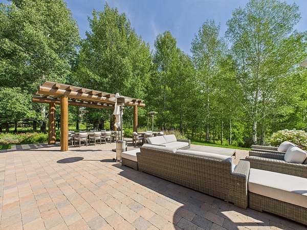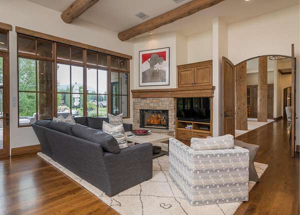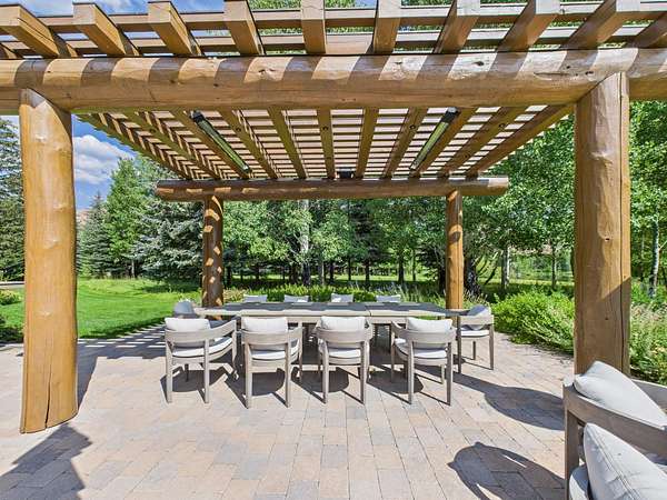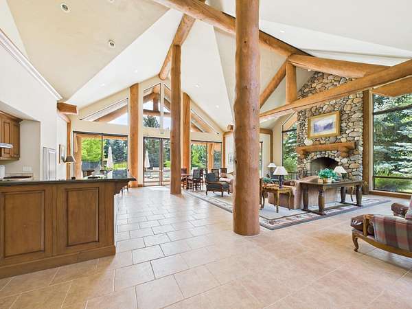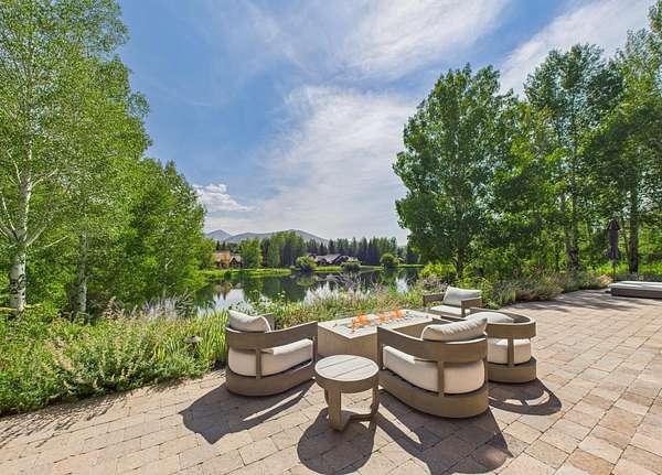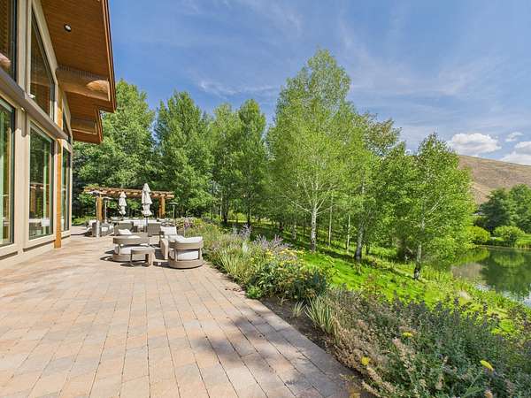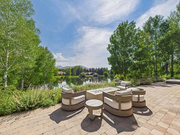 This waterfront mountain home was custom-built and more recently underwent a stunning interior refresh by Jen Hoey and a landscape update by BYLA. Situated on a sprawling lakefront lot on a private cul-de-sac, the gracious home offers privacy and scenic views. Exterior features include a hot tub, cold plunge, multiple outdoor seating areas, pergola covered outdoor dining, automatic solar shade and a gas fire-pit. Inside you will find stylish single level living with three ground floor bedrooms on one wing and a large guest suite with sitting area above the large three-car garage. Between is a great room, designed for entertaining with a wet-bar, soaring ceilings and stunning rock fireplace. New furnace, boiler, CEDUR roof, appliances and kitchen surfaces. Also includes a state-of-the-art Oxygen system in the primary bedroom. Golden Eagle HOA amenities include a pool and tennis courts.