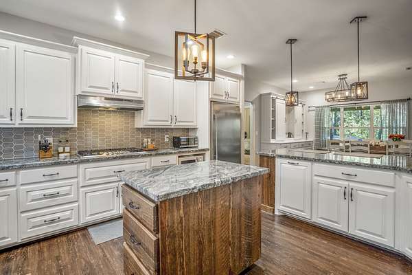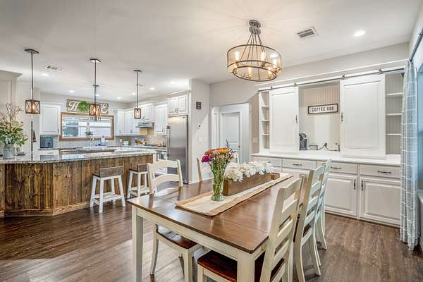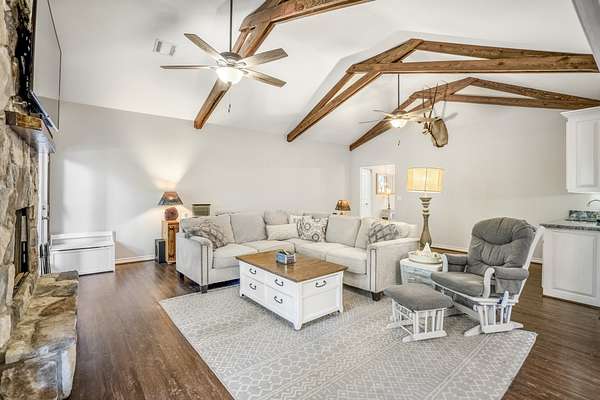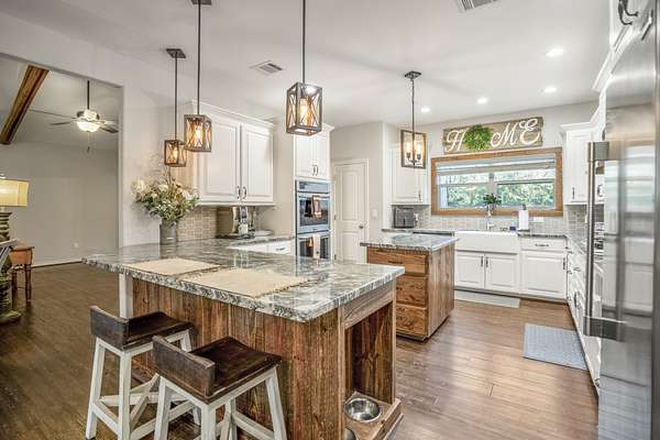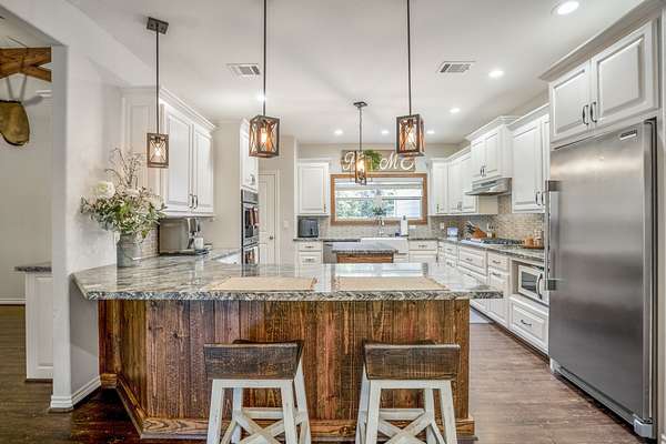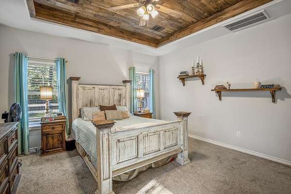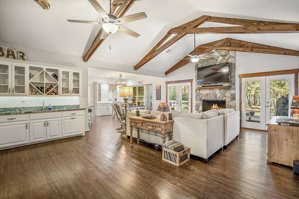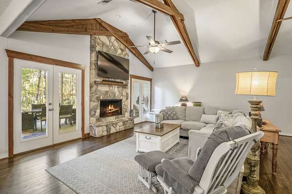 Rare and unique opportunity to purchase a home on 1.7 acres with frontage on Fish Creek Lake. This home was custom built with a spacious primary suite, 3 guest bedrooms, an office, wet bar, bonus loft, and roomy kitchen, dining, living combo. The primary bathroom suite features a soaking tub and separate shower with his and hers vanities and walk in closets. The primary also includes a tucked away dog room for your favorite family companion. The kitchen was made for entertaining with double wall ovens, a walk in pantry, and ample room for preparing. Wood trusses and a brick fireplace make the living area feel cozy with windows framing wooded views of the lake in the distance. The bonus loft has hidden access along with its own half bath - a great flex room with lots of possibilities! This home was built with love and care, and is ready for new owners to enjoy and make their own.