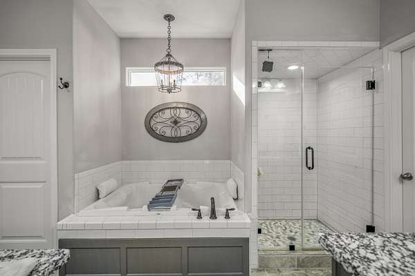 - Bath in Primary Bedroom, Breakfast Bar, Ceiling Fans, Entrance Foyer, Fireplace, Granite Counters, High Ceilings, Kitchen Dining Combo, Kitchen Family Room Combo, Kitchen Island, Living Dining Room, Loft, Programmable Thermostat, Separate Shower, Soaking Tub, Tub Shower, Vaulted Ceilings, Walk in Pantry, Wet Bar