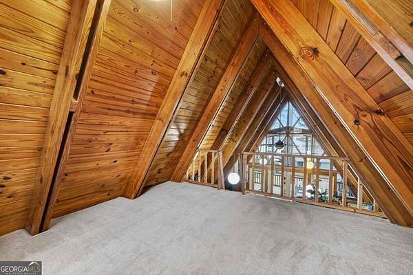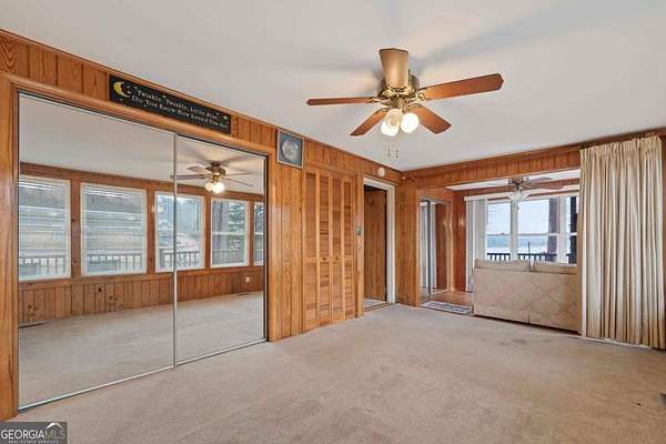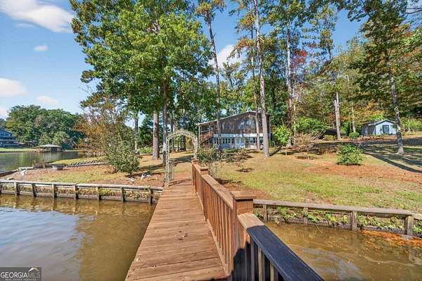 AMAZING PROPERTY WITH 250+/- FEET OF SHORELINE (200+/- Pin-to-Pin) AND OVER 2 ACRES ON THE LAKE! This home is situated on an amazing piece of Lake Sinclair real estate! Super level lot with plenty of space! This modified A-Frame home features; an amazing screened in back porch with a STUNNING view, custom wood work, a fully finished basement, detached shop, detached carport with a half bath, detached building that was utilized as a library attached to the well house, plenty of space & an abundance of shoreline! Walk inside and you'll be greeted with vaulted ceilings with custom wood beams and ceilings, an open concept kitchen and a loft upstairs! Just off the living area is the primary bedroom with an ensuite bathroom, sitting area and private porch. Also located on the main level are two flex spaces that were utilized as sleeping space but can be used as a pantry, office area or rec room and a full bath in between. A spiral staircase leads you downstairs where you have a large living space, sunroom, another screened-in porch, laundry room and a bedroom/bathroom. This lot is super level & is an easy walk down to the water. On the waters edge, you have a boathouse & a flag dock. This property is two lots - leaving endless possibilities of what you can do. You can buy & hold the house and build your dream house on the extra lot, start from scratch and build an estate style compound, remodel and more! This property is ideal for those looking for extra space and privacy on the lake, a savvy investor who is looking for two lakefront lots/properties, someone who wants to enjoy the lake and make memories or someone wanting their forever home! This property is just around the corner from Twin Bridges Marina - making it very convenient to a boat launch, storage and store! Close to HWY 212 so just a quick trip to Macon! A property with this amount of shoreline and two lots rarely comes available on the lake... so if you've been looking for something that's private, has elbow room and is a good investment... Here you go! Call today and let's get you SOLD on Sinclair!