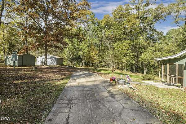 WOW. 5.26 unrestricted acres in desirable Chatham County This charming home blends rustic warmth with thoughtful updates. The main level features oak flooring, wainscoting, and a cozy breakfast room with gas logs. The kitchen shines with beautiful hickory cabinets, a warm tile backsplash, and granite countertops. The spacious main bedroom offers a wood-burning fireplace and a private balcony with tranquil wooded views. A finished basement provides flexible living space with new ceramic flooring, bonus/office area with separate entrance, and multiple heating options including a wood-burning insert, catalytic heater, and baseboard heat. Recent upgrades include a new metal roof (2022) and new hot water heater (2022), fresh paint inside and out, new stair railing, and a sealed crawl space. Relax on the large screened porch or entertain on the expansive cement patio surrounded by mature landscaping-crepe myrtles, jasmine, butterfly bush, magnolia, and more. Additional highlights include a large detached garage/workshop with 200-amp electric service and separate meter, circular driveway, and spacious laundry room. Two window units provide seasonal comfort, though a mini-split system could easily be installed if desired. Off Hwy 15-501! Enjoy low county taxes and convenient access to Fearrington Village, Jordan Lake boat ramp, Chatham Park/Mosaic, and countless shopping, dining, and entertainment options. Experience the peace and privacy of country living with modern convenience-this property has it all!