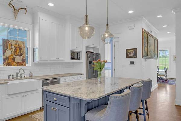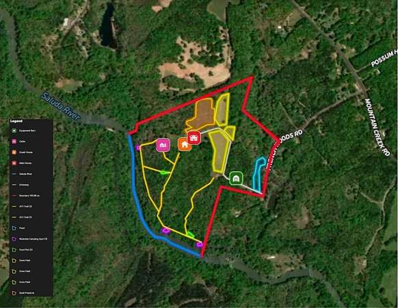 River Rock Farm boasts over 100 remarkable acres on the Saluda River featuring a privately positioned recent construction main home. The modern farmhouse design offers 4 bedroom, 3 1/2 bathrooms, tall ceilings, and luxury finishes in every corner. Behind the main home, River Rock Farm offers a small barndominium with a studio style suite upstairs and ample storage below. Features include a single bedroom and bathroom, kitchenette, entertainment space, and a porch overlooking stunning pasture. Beyond these two beautiful buildings, one of the ways this farm goes above and beyond for the outdoorsman is the trail side bunkhouse. This bunkhouse can entertain and sleep your entire hunt club around your epic wildlife experiences. Roughly half a mile of private Saluda River frontage provides abundant access for fishing, kayaking, and relaxation. A managed six-acre dove field and nearly four acres of quail release habitat provide an excellent opportunity for the upland bird enthusiast. For waterfowl, River Rock Farm showcases a 1-acre duck pond primed for your next hunt. As far as big game is concerned, there is no shortage of deer, wild boar, turkey, and even black bear, amongst 75 acres of mature hardwoods. Food plots, deer stands and intricate trails, allow ready access to every inch of the property. With this many features, River Rock Farm would be incomplete without a place to store your necessary maintenance equipment. A 2000 sq ft metal barn with full utilities in place is conveniently located right off your main driveway. 1200 sqft of this building is enclosed, leaving 800 available under an extended roof.