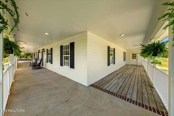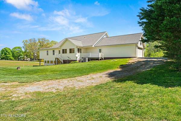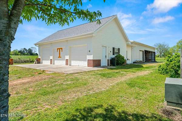 Welcome to a property that feels like home the moment you arrive. This modern Cape Cod farmhouse, thoughtfully designed and built in 2008, offers the perfect blend of timeless charm and modern convenience. Set on 4.9 acres of level pastureland with mountain views throughout, this is a place where comfort and practicality come together to create something truly special. The inviting wraparound porch, spanning 891 square feet, is the perfect spot to sip your morning coffee or enjoy quiet evenings with loved ones. Inside, the main level features 3,195 square feet of well-planned living space, including a spacious kitchen that's ideal for gathering and a cozy primary suite designed for relaxation. The bonus room upstairs adds flexibility for whatever your lifestyle needs-whether it's a playroom, home office, or hobby space. The enclosed porch provides an intimate space to enjoy the outdoors year-round, while still feeling connected to the warmth of home. The fully finished basement, with its own kitchen, bedroom, bath, spacious living area and private entrance, offers 2,123 square feet of additional living space. It's perfect for guests, extended family, or possibly separate income producing.. For those who value practicality as much as beauty, this property delivers. The oversized two-car attached garage is complemented by a 36x24 detached garage and an attached 30x40 workshop-ideal for projects or storage. A 42x36 pole barn/equipment shed adds even more versatility for equipment or animals. The level to gently rolling acreage offers endless possibilities, from pastureland to gardening or additional building sites. Conveniently located between Vonore and Madisonville and just a short drive to Several Higher End Communities including Tellico Village, Rarity Bay & Kahite. This home combines the peace of country living with easy access to nearby amenities. Whether you're looking for a place to spread out, entertain family and friends, or simply enjoy the beauty of nature, this property has everything you need to feel right at home. Come see it for yourself-and discover what makes this property so special. Additionally, two adjoining properties are available for purchase - a 1,344 sq ft home on a 1 -acre lot and a separate 1.31-acre vacant tract. Acquiring all three parcels together presents a unique opportunity to create the perfect multi-generational estate. Per FEMA Flood Map: Property is not in Flood Zone and requires No Flood Insurance.