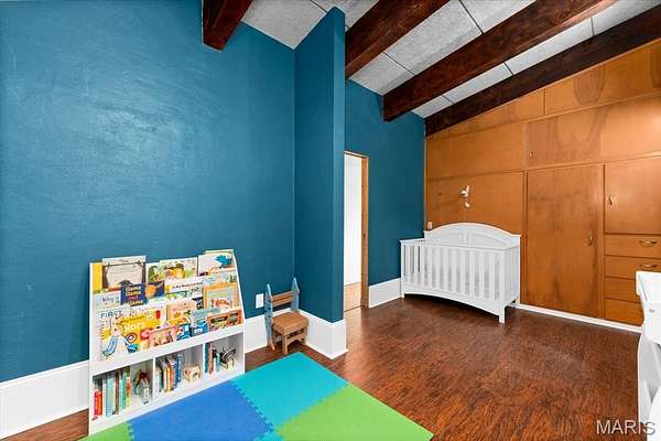 - Beamed Ceilings, Built-In Features, Center Hall Floorplan, Dining/Living Room Combo, Entrance Foyer, High Ceilings, Natural Woodwork, Open Floorplan, Track Lighting