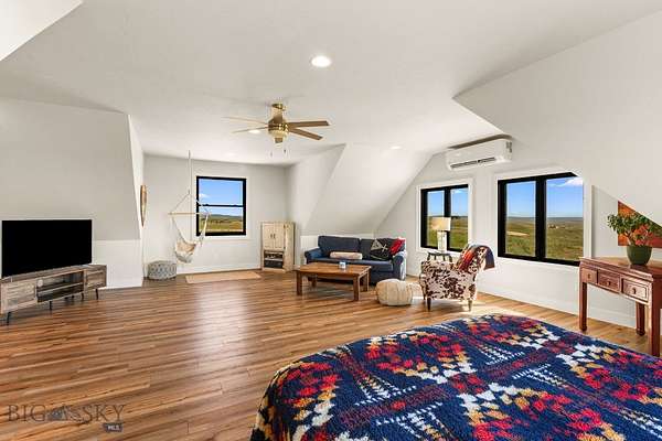 Welcome to this incredible custom home, perfectly situated on over 21 acres of pristine Montana landscape featuring a private spring. Designed to take full advantage of the breathtaking surroundings, this 3,3736 home features a dramatic open floor plan highlighted by a 20-foot wall of windows and sliding doors that perfectly frame sweeping 360-degree panoramic views of the Tobacco Roots, Lone Peak, and the Bridger Mountains. Inside you will find 3 spacious bedrooms, and 3 beautifully appointed bathrooms, and a chef's kitchen equated with top-of-the-line appliances, ideal for entertaining or a cozy evening at home. With countless thoughtful design elements throughout, including vaulted ceilings that create a warm, sophisticated ambiance, custom white oak flooring, Douglas fir and elm accents, and a heated two-car garage, every detail of this home has been perfected. With convenient highway access and a quick commute to Bozeman, Ennis, or Three Forks, this unique property offers both tranquility and accessibility - the perfect balance of seclusion and convenience!