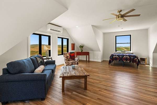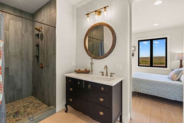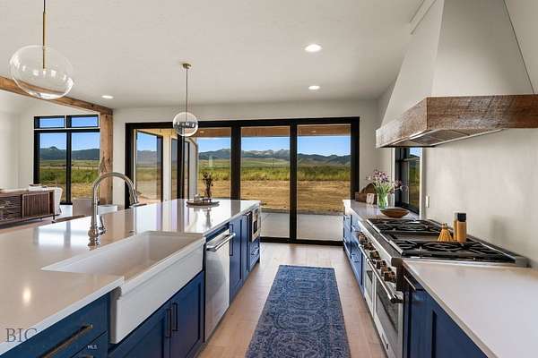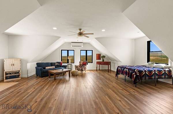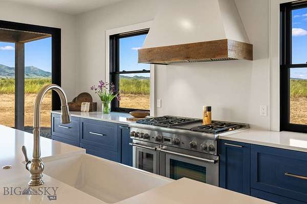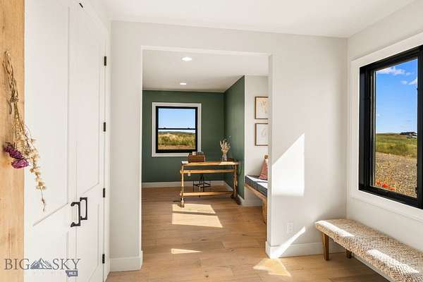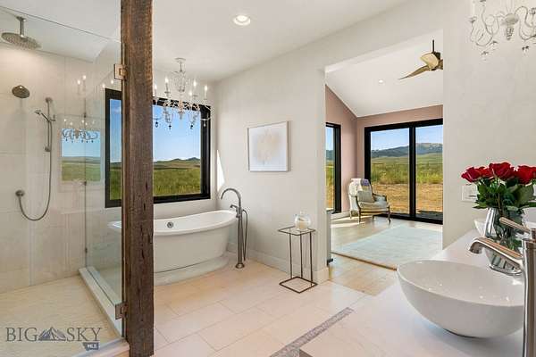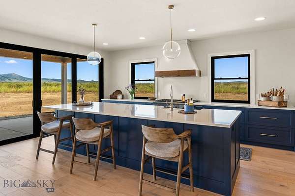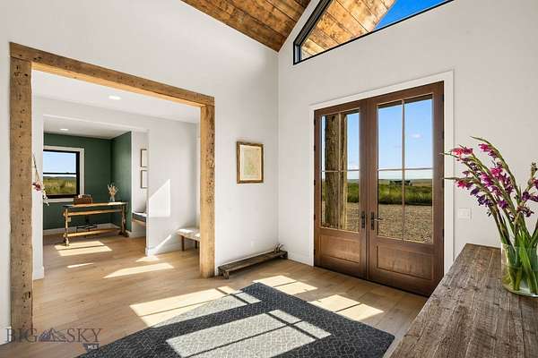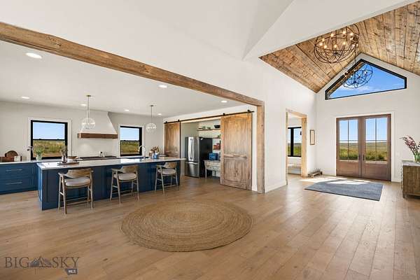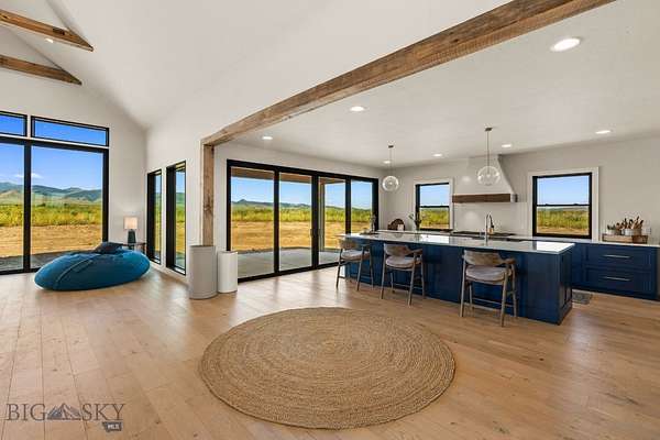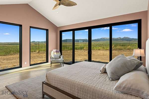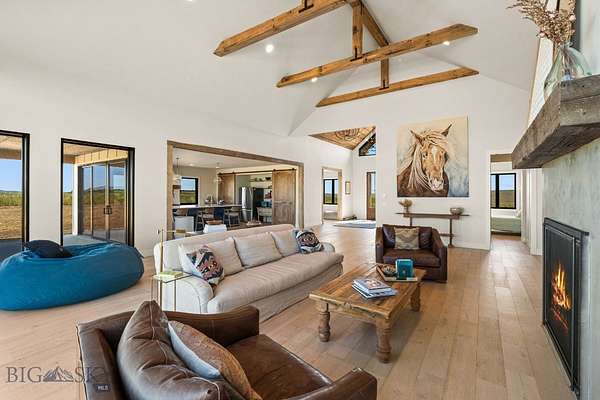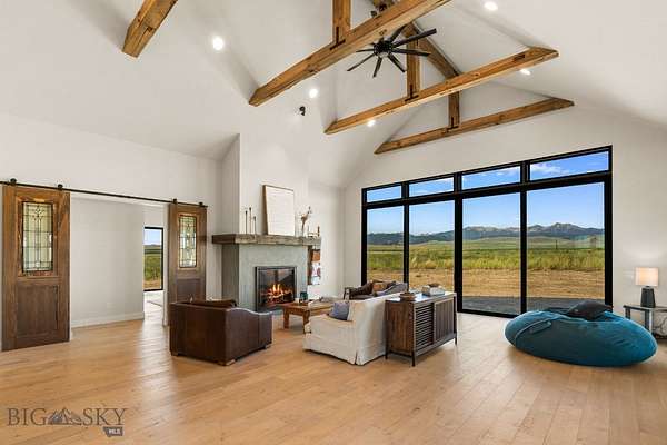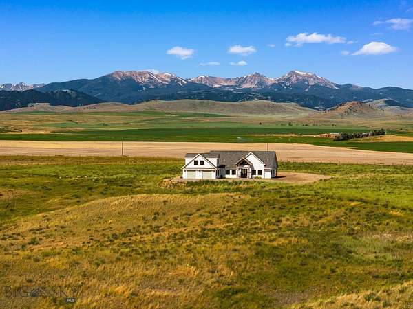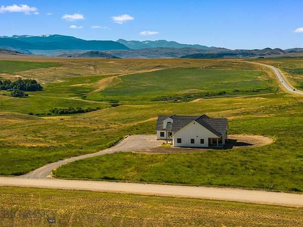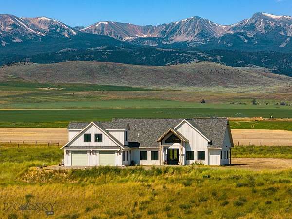 Welcome to this incredible custom home, perfectly situated on over 21 acres of pristine Montana landscape featuring a private spring. Designed to take full advantage of the breathtaking surroundings, this 3,3736 home features a dramatic open floor plan highlighted by a 20-foot wall of windows and sliding doors that perfectly frame sweeping 360-degree panoramic views of the Tobacco Roots, Lone Peak, and the Bridger Mountains. Inside you will find 3 spacious bedrooms, and 3 beautifully appointed bathrooms, and a chef's kitchen equated with top-of-the-line appliances, ideal for entertaining or a cozy evening at home. With countless thoughtful design elements throughout, including vaulted ceilings that create a warm, sophisticated ambiance, custom white oak flooring, Douglas fir and elm accents, and a heated two-car garage, every detail of this home has been perfected. With convenient highway access and a quick commute to Bozeman, Ennis, or Three Forks, this unique property offers both tranquility and accessibility - the perfect balance of seclusion and convenience!