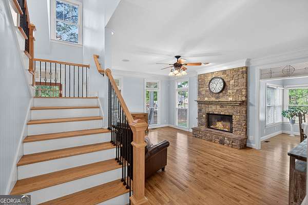 Set on a spacious 1.93-acre lot, this CUSTOM-BUILT ENERGY EFFICIENT HOME offers 3 bedrooms, 2.5 baths, and expanded dual driveways for ample parking. This home is spotless and beautifully maintained! The front rocking chair covered porch entry opens to the family room with hardwood flooring, a striking stone fireplace, and stone mantel, flowing into a sunlit breakfast area with an etched glass transom. The kitchen features granite countertops, wood cabinetry, double ovens, and a cooktop, and connects seamlessly to the formal dining room. The laundry room is well-appointed with abundant cabinetry and a utility sink. The main-level primary suite includes a tray ceiling, walk-in closet, and an en suite with double vanity, jetted tub, and separate shower. Upstairs offers two bedrooms with walk-in closets, a full bath with double sinks, a large storage closet, and a bonus room or optional fourth bedroom. The unfinished basement provides excellent space for storage, workshop, or future expansion and includes a third garage/boat door. Outdoors, enjoy a fenced backyard and a new oversized deck along with a large storage shed and a handy carport is at the second driveway. Additional highlights include an irrigation system, Low-E windows, and the home is wrapped with upgraded durable radiant barrier structured 2 premium vinyl as well as the BRAND NEW (April 2025) roof is situated with a radiant barrier to help keep energy costs down. Pride of ownership is evident throughout the home as it is impeccably kept and move-in ready! Whitewater School District - No HOA!