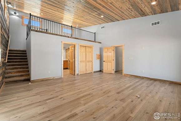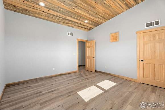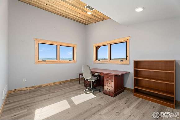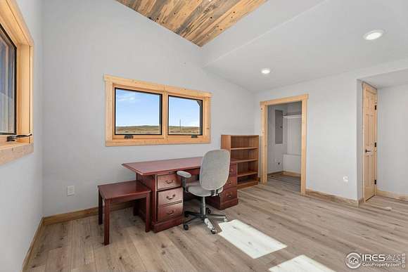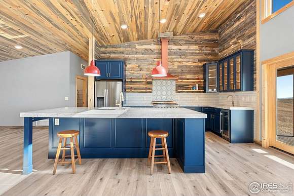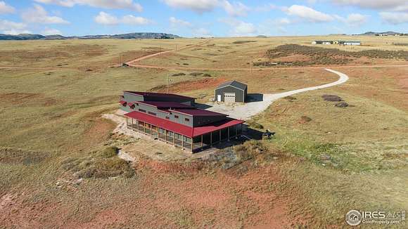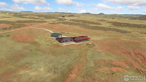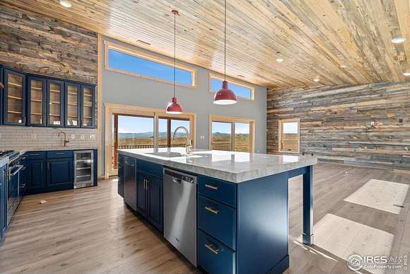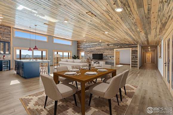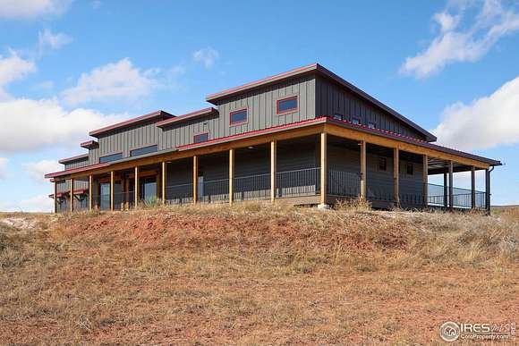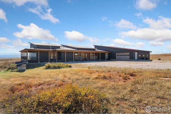 Embrace Colorado's breathtaking landscapes with 40 acres of sprawling land, offering an unparalleled 360-degree view of nature's finest. A 1,152 sq ft attached garage and a 1,200 sq ft shop ensure plenty of space for your cars, tools, equipment, and toys. From rolling hills to majestic mountain ranges, this single-level custom home is designed to capture the beauty of its surroundings. Step inside to discover a home bathed in natural light, where wood accents add warmth and rustic charm throughout. The massive living area provides an abundance of space, with more than enough room to configure your dream setup. The kitchen is a culinary masterpiece, featuring stainless steel appliances, 2 dishwashers, and granite countertops. A huge center island with seating serves as the perfect gathering spot for meals and conversations, making this kitchen both functional and inviting. A pantry adds the finishing touch, providing organized storage for all your cooking essentials. Retreat to the spacious primary suite, a sanctuary designed with your comfort in mind. It includes a spa-like ensuite bathroom, a generous walk-in closet, and a loft area, perfect for a private workspace or den. This sanctuary also offers direct access to the deck, allowing seamless indoor-outdoor living. Accommodation is plentiful with three additional bedrooms, each with a large closet. The wraparound covered deck is the ultimate spot to take in the stunning views from all angles. This outdoor space brings the beauty of Colorado right to your doorstep, with plenty of acreage for horses as well. Beyond the home, a huge outbuilding with a 10-foot roll door provides endless possibilities for storage or hobbies, while a complete RV hookup adds extra convenience. Located just 30 minutes from downtown, this home offers the perfect balance of serene country living and convenient access to urban amenities.