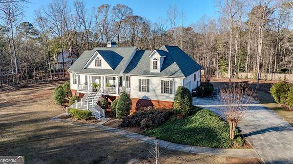 Fabulous Charleston Style Home on a 1.68 Acres lot in sought after Longwood neighborhood!! The Kitchen has granite counter tops with tiled backsplash, stainless appliances and an island, oak hardwood flooring! Breakfast bar and breakfast area with plantation shutters. Vaulted Family Room with wood burning fireplace with marble surround w/ gas option, oak hardwood flooring & plantation shutters. Formal Dining Room with trey ceiling, oak hardwood flooring & plantation shutters. Primary bedroom on main with trey ceiling w/ ceiling fan with exterior door leading out to covered porch overlooking backyard, tiled primary bathroom w/ double vanity sinks, jetted tub & separate tiled shower & walk-in closet. Two guest bedrooms on main, both have closets & ceiling fans. Tiled guest bathroom in hallway with granite top vanity & tiled shower/tub! Bonus room upstairs with closet and walk-in attic floored for storage! Tiled laundry room on main with mud sink & cabinet. Full daylight basement with LVP Flooring throughout game room/tv room with Kitchenette with granite countertop with stainless sink & breakfast area. Guest bedroom with closet & tiled guest bathroom with granite top vanity & tiled shower/tub. Addiitonal room with closet. Two unfinished rooms, one currently used as an exercise room and the other for storage! Front and back rocking chair front porch!!