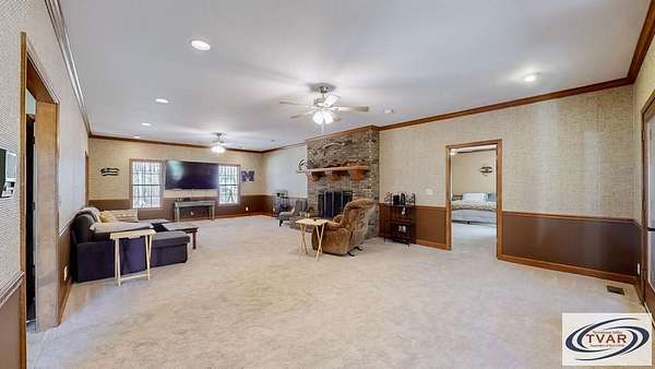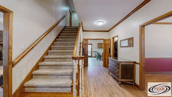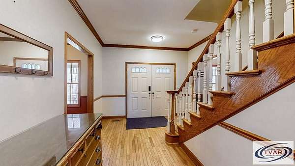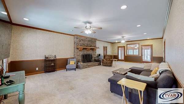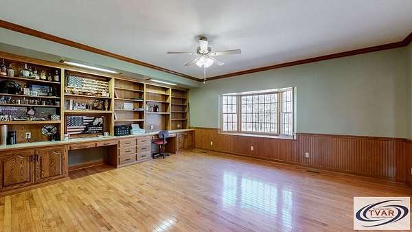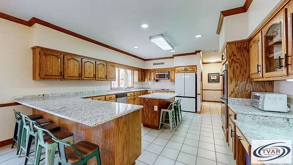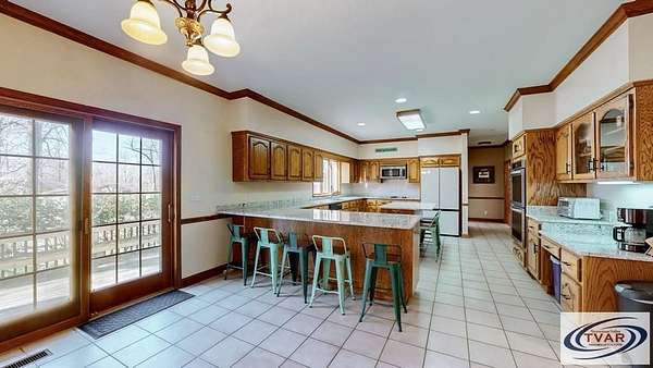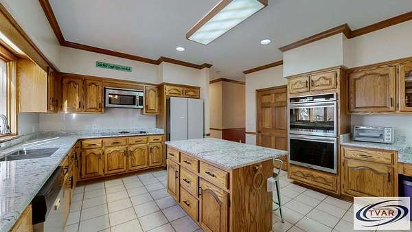 Traditional family home with over 5000 sq. ft. of heated living space, entry foyer with stair case, great room ,brick fireplace, sun room ,brick flooring, sky lights ,lots of windows to enjoy your morning coffee, French doors from dining room to den/library, built in bookcases, 4 bedrooms, 3 full baths, 2 half baths, all the rooms are very spacious, an abundance of walk-in closets & storage space, kitchen includes stainless appliances, granite counter tops, lots of cabinets, island, built -in desk and walk-in pantry, breakfast nook includes French doors onto a large 49 x 16 wood deck ideal for entertaining or hosting family gatherings, the oversize master bedroom provides a sitting area, updated bath complete with a soaking tub, tiled shower, tiled flooring, recessed lighting and crown mold throughout, partial finished basement outside entrance, 4 car garage, concrete drive with plenty of parking space partial chain link fenced yard ideal for children & pets. New d/w to match fridge.