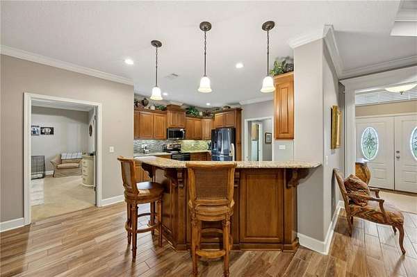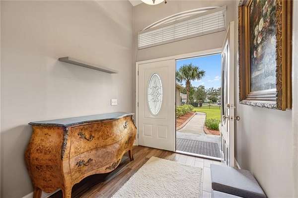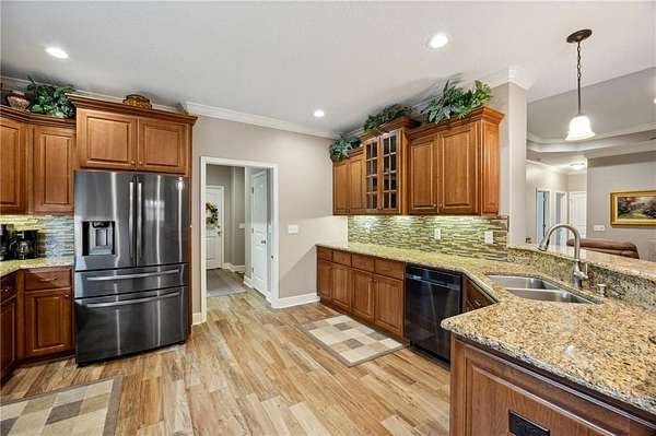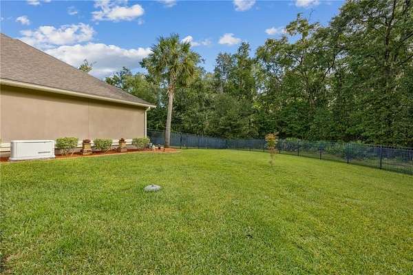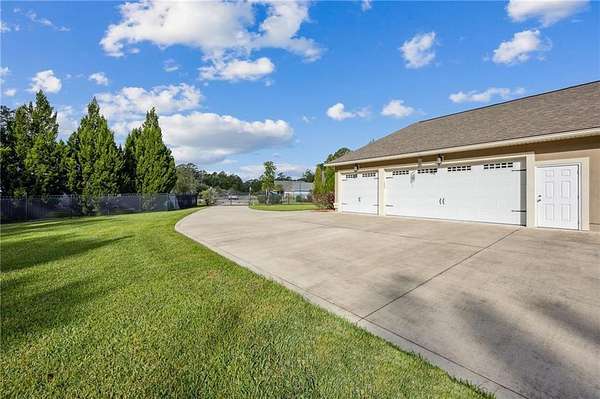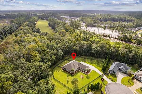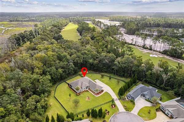 Discover a truly unique opportunity to own an expansive, estate-sized property right in the heart of Kingsland, Georgia. This beautifully maintained 4-bedroom, 2-bathroom home is situated on over 2 acres, with a full acre already cleared, meticulously maintained, and completely fenced for privacy and security. The property features an automated gate entrance at the driveway, providing both elegance and ease of access. This home offers upgrades galore designed for modern convenience and peace of mind. Never worry about a power outage with the whole-house Generac generator. The property is equipped with a security system and an incredible hot & cold outdoor dog wash-perfect for pet lovers! Enjoy peaceful evenings on the screened-in back porch. Storage is a breeze with a spacious 3-car side-load garage and an attic elevator for effortless access to seasonal items and more. Inside, you'll be greeted by durable wood-look tile floors. The smart split floor plan ensures privacy, with a spacious primary suite serving as a true retreat. This luxurious suite features a walk-in tile shower, soaking tub, a double vanity, and elegant granite countertops. The central location of this Fairways Edge estate is absolutely key! You'll be just a few short miles from Laurel Island Links for a round of golf, I-95 for easy commuting, Kings Bay Naval Base, and all your essential grocery stores. Best of all, you can embrace the local lifestyle by taking your golf cart just a few blocks away to enjoy a meal at Karv Bistro or grab a drink at Bogey's Bar and Grill! Don't miss out on this rare blend of space, luxury, and prime location. Schedule your showing today!