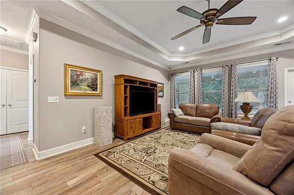 From Laurel Island Parkway, head east until you reach the entrance to the Fairways Edge community, then turn left onto Masters Way and continue straight until you arrive at 120 Masters Way at the end of cul de sac.