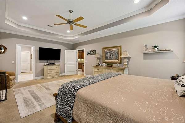 - Ceiling Fans, Ceilings Above 9 ft., Garagedooropener, Pantry, Recessed Lighting, Split Bedrooms, w/ Connection