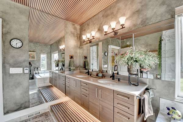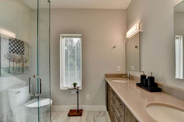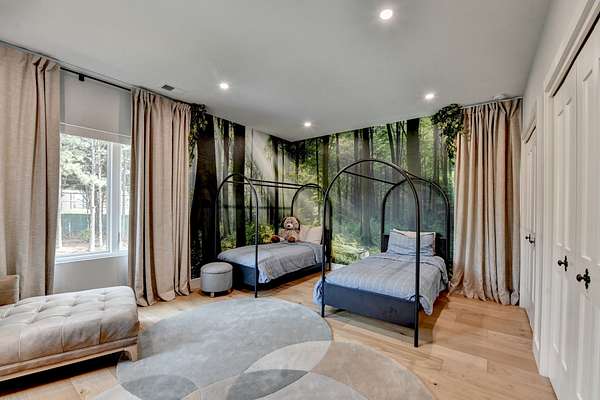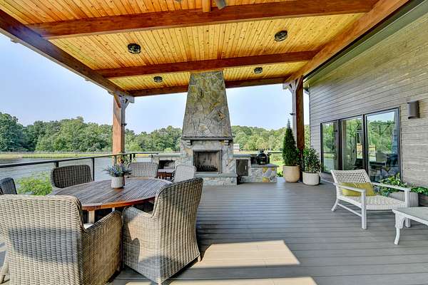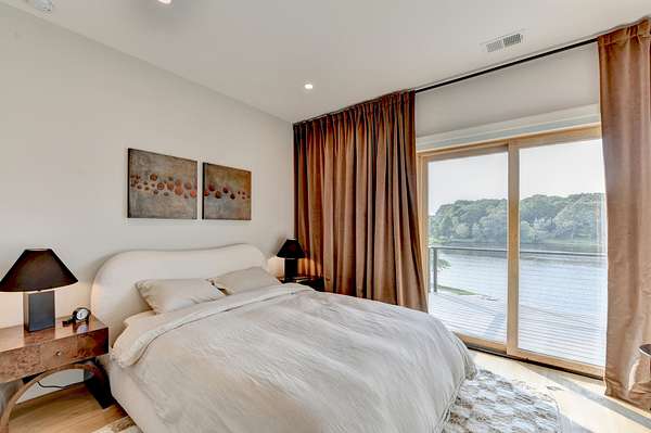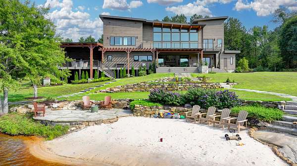 Features:5 Bedroom Suites: Each bedroom includes a private suite bathroom, access to the back porch, and lake views.6 Full Bathrooms: Every room has its own bathroom. The sixth bathroom is shared and includes a steam sauna for relaxation.Master Suite Enhancements:Additional soundproofing in the walls for added privacy.Spa-style soaking tub in the master bathroom.Independent Temperature Control in each bedroom for personalized comfort.Chef's Kitchen:High-end European LEICHT cabinets imported from Germany.Expansive layout ideal for cooking and entertaining.Living Room:Dramatic open-concept space with a floor-to-ceiling glass front wall offering panoramic lake views.