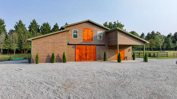 Features:Horse Stalls: Equipped with specialty flooring for comfort and durability, plus direct water access in each stall for ease of care of two horses.Private One-Bedroom Apartment: