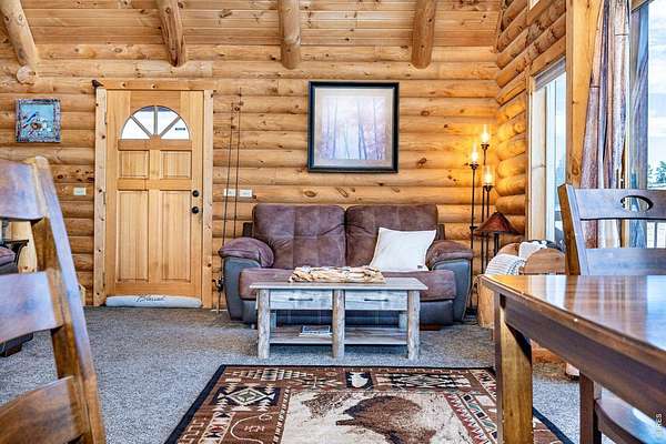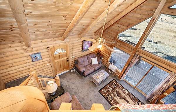 Finally, the time has come for you to own your own mountain cabin in the desirable Glacier View Meadows Community. This amazing log home perfectly placed on 6.39 acres has decks on 3 sides with expansive views all around. This home has been thoughtfully updated with approximately $25,000 in recent improvements. Updates include new carpet throughout, SmartCore LVP flooring in the kitchen, bathrooms, and utility/laundry room, a new HVAC system, water heater, and a Resideo smart thermostat, allowing you to conveniently monitor and adjust temperatures remotely while maintaining low-level minimum settings when away. The kitchen has been refreshed with granite countertops, a new sink and fixtures, plus new appliances including the oven, microwave, dishwasher, and refrigerator. A new washer and dryer are also included, along with a new garbage disposal. The loft hosts the primary suite with its own bathroom, walk in closet and sitting area and overlooks the great room and incredible views to the east. The second bedroom and bathroom can be found on the main level. This move in ready opportunity is set for you to enjoy cool summer nights looking at the stars after a busy day of numerous outdoor activities. Call today for your personal showing.
