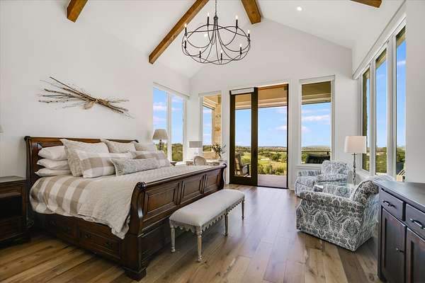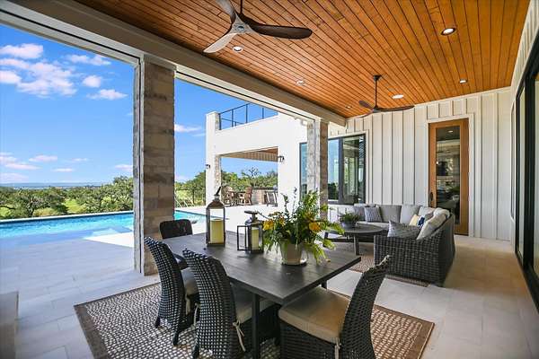 Wanting new construction home in the exclusive golf community of Summit Rock in Horseshoe Bay? This is it! Situated along the hillside of #11 fairway and green, this home has sprawling views of Lake LBJ and Packsaddle Mountain. The floor plan offers a primary suite with tall beamed ceilings with expansive views towards the lake, a guest ensuite and study with game room/bar on the ground floor and 2 guest ensuites and a flex game room with kitchenette upstairs. The kitchen features double dishwashers, warming drawer, double ovens, and a 6 burner gas range. The game room/bar offers a full range of appliances and beverage coolers with ice maker. The exterior of the home has 5 patios, pool with a 5' BADU turbo pro swim resistance jet and fireplaces! The owner has so many upgrades that include: James Loudspeakers, Control4, electric shades throughout, paver driveway, and custom drapes. This home is ready to move in and start entertaining!