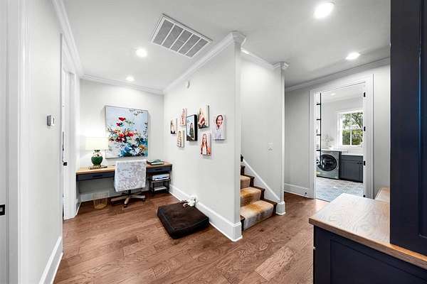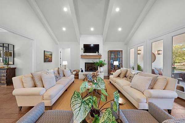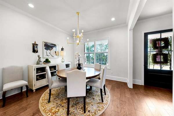 This elegant Country Club Estates 4 bedroom-4.5 bathroom home seamlessly blends sophisticated design with everyday functionality! It offers an expansive layout perfect for both relaxation and entertaining. The heart of the home is a true chef’s dream kitchen, centered around an oversized granite island with seating and featuring high-end appointments like a 6-burner gas cooktop, wall oven, farmhouse sink, and exquisite custom built-ins. Throughout the main level, luxurious wood flooring leads you into a grand living room with a vaulted ceiling and a stately fireplace. For quieter moments, the screened-in porch provides a retreat with a cozy brick fireplace and views of the backyard. The vaulted primary ensuite serves as a private sanctuary, boasting separate sinks with a dedicated vanity table, a soaking tub, modern glass-sided shower and an impressive walk-in closet with built-ins. Downstairs, you'll also find two guest bedrooms, split from the primary, each with their own bathroom and walk-in closets. Upstairs, you'll find a vaulted bedroom with a full bath. Practicality is just as prioritized with this property including a drop-zone featuring custom built-ins, extensive parking provided by both a 2-car attached garage and an additional 2-car detached garage. This home is a masterpiece of indoor-outdoor living.