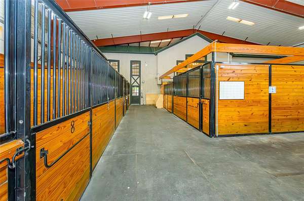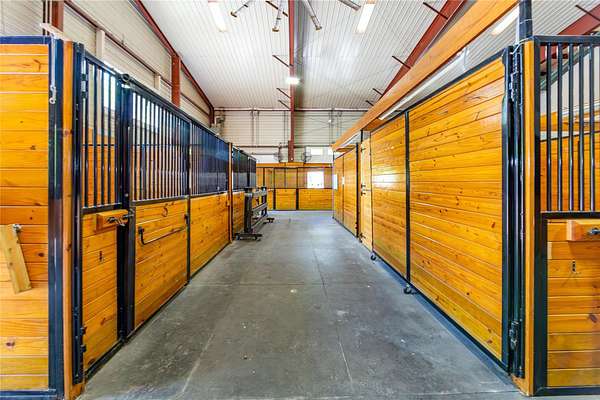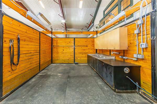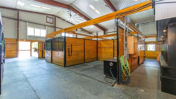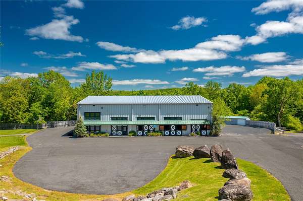 120 Nichols presents an exceptional opportunity, offering a unique blend of sophisticated infrastructure and expansive land. This remarkable property began its life in 2001 as a two-story steel building with an 80 x 100 foot footprint, providing 8,000 square feet on the first floor and featuring three oversized garage doors on each side. Set on a sprawling 15.74-acre parcel, the entire property underwent a dramatic transformation in 2011, meticulously reimagined as a premier equine veterinary practice and horse boarding facility. Upon arrival, you'll be greeted by a beautifully landscaped entry, complete with split rail fencing, stone pillars, and a gated entry equipped with a camera, lighting, and call box. A long, winding driveway leads to the impressive two-story building, where the original utilitarian steel structure has been expertly retrofitted to emulate the charm of a traditional horse stable. Stepping inside reveals a dramatic two-story reception area. The interior renovation ingeniously split the barn, creating dedicated spaces for stables on the right and the veterinarian practice on the left. The veterinary side boasts ample office space, starting with the reception area, additional offices, kitchen/breakroom, dedicated mechanical/ID rooms, and multiple bathrooms. There are large rooms designed for a pharmacy, a lab space, and a conference room that overlooks the stable. The caretaker's apartment has its own private entrance, with an open kitchen and living area, bedroom, full bath with a washer and dryer. The stable area itself features 11 stalls, many as large as 14 x 14 feet, along with a tack or office room, feed storage, a wash stall, tack storage cubicles, and a huge industrial overhead fan. This versatile space is also heated if needed. The building is further enhanced by a fire alarm and sprinkler system, a generator, and fiber optic high-speed network connectivity. Outside, the amenities continue with a 100 x 200 foot riding ring featuring footings designed by Lawton Adams. A three-bay storage shed, with each stall measuring 10 x 12 feet, includes two bays designated as quarantine stalls and the third for equipment storage. You'll also find an outdoor wash stall, a designated pad for a dumpster, a small hay shed, and two small medical paddocks. Approximately 10 acres are fenced with post and rail, complete with mesh lining to secure the property and create a predator-proof environment. Nearly five additional acres remain that could potentially be cleared. With R-160 zoning, this property offers a wide array of possibilities, including permitted, conditional, and special permit uses. Imagine a thriving farm, greenhouses, nurseries, a home occupation, or a membership club. Alternatively, for those who collect and envision a grand display space, the stables could be transformed back into a giant area perfect for showcasing a treasured collection. Located on the edge of the Brewster and North Salem line, this property offers superb convenience to Routes 202 and 22, I-684/84, the NY/CT border, and multiple Metro North Train Stations. Be sure to click on the virtual tour icon and use your mouse to do a 360 degree tour of this incredible parcel.