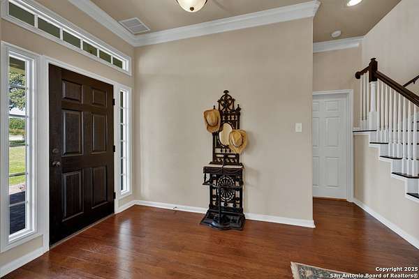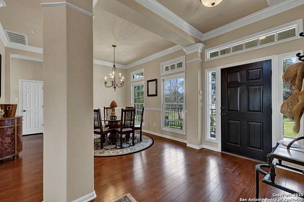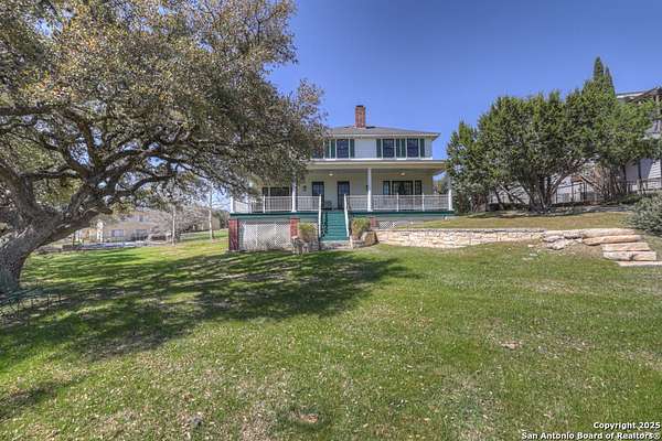 One of the BEST WATERFRONT VALUES AT THE LAKE!!! You can't beat this price per sq ft for an amazing Canyon Lake property offering a unique blend of classic Southern charm, spaciousness, and beautiful views! This true Texas gem sits on a picturesque 1.68 acres and backs up to the army corps of engineer's land. Once directly behind the adorable gazebo, the water has receded, but this is still a great waterfront home at a non-waterfront price!! And when the water comes back... you'll have one amazing waterfront estate!! You can hop on your ATV and be at the water's edge within moments! With 5 spacious bedrooms and 5 full baths there is plenty of space for hosting family and friends. Three of the bedrooms have their own private ensuite, and a 4th bedroom connects to a full bath as well. The huge back porch spans the length of the home and offers incredible views of the meadow and hills behind. You will love this classic floorplan with soaring crown molded ceilings. The kitchen features sleek dark granite, 2 ovens, a pantry, and a small dining area separate from the formal dining area off the kitchen as well. The high ceilings and cozy wood burning fireplace in the living room add to the grandness of this home. The beautiful red barn offers an immense space for parking vehicles, lake craft, and all your storage needs. Tucked away in a small quiet neighborhood with no HOA! Make it a roomy short-term vacation rental or even rent it out for special events.. there are so many possibilities! Don't hesitate, schedule your showing today!