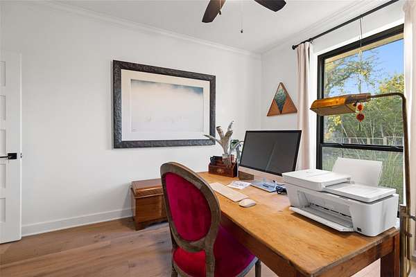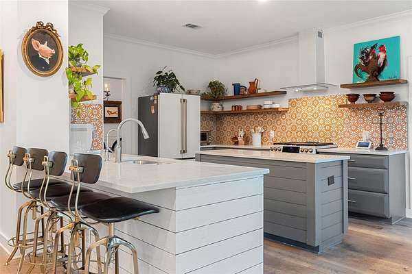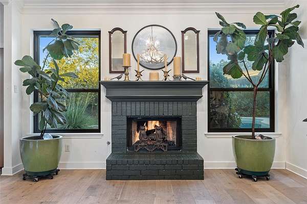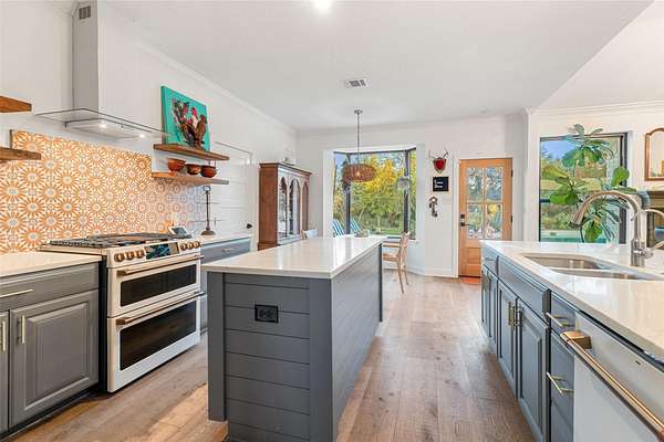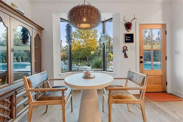 Welcome to 120 Oak Springs Drive, a private, gated retreat on four unrestricted acres in the heart of Dripping Springs-just minutes from town and only 20 minutes to Wimberley. This exceptional modern farmhouse blends timeless Hill Country character with refined, contemporary style for the perfect balance of comfort and sophistication. Step inside to light-filled open living spaces wrapped in shiplap accents, warm wood floors, and designer lighting. The spacious kitchen shines with white stainless steel GE Cafe Collection appliances, sleek quartz countertops, and an oversized island that makes entertaining effortless. The primary suite offers a serene escape with a spa-inspired ensuite bath featuring a custom walk-in shower and thoughtful design details throughout. Three additional bedrooms provide flexibility for guests, family, or a home office. Outside, your private backyard oasis awaits - complete with a sparkling resurfaced pool, expansive patio areas, and wide Texas skies overhead. Mature oak trees and open pasture create an idyllic blend of shade, privacy, and natural beauty. A fully insulated, air-conditioned outbuilding adds incredible versatility - perfect for a creative studio, workshop, or poolside entertaining space. This property is a rare combination of modern convenience and relaxed country living, offering peace, privacy, and proximity to everything that makes Dripping Springs special. Located in the acclaimed Dripping Springs ISD, and close to local shops, restaurants, and wineries, this is more than a home - it's a lifestyle.