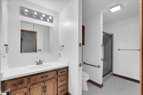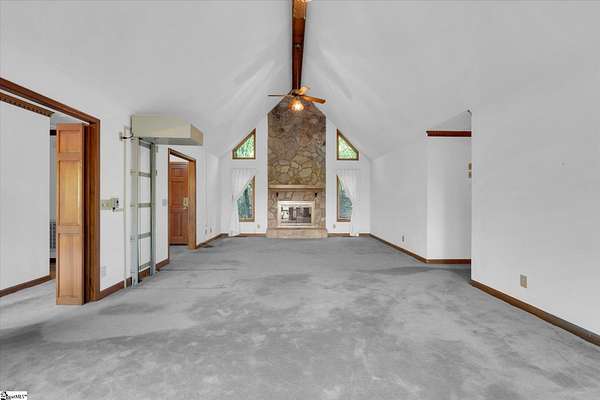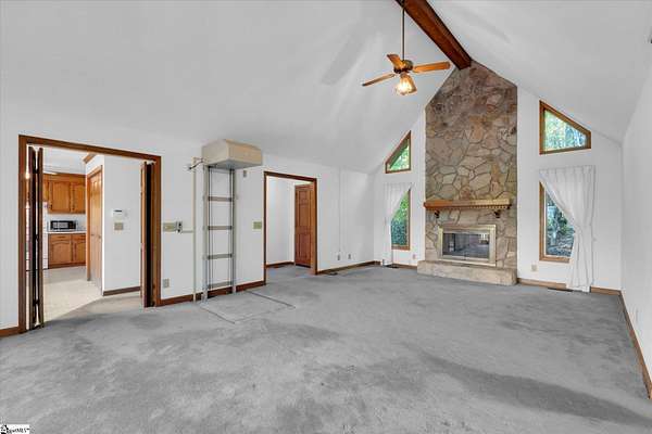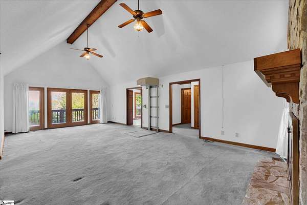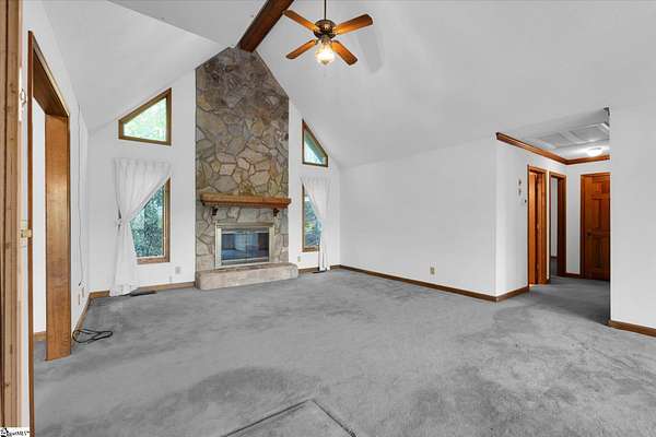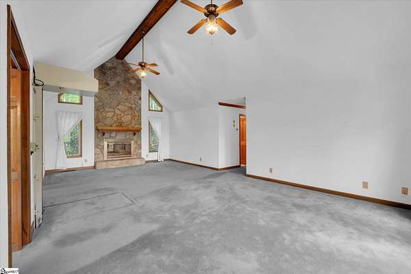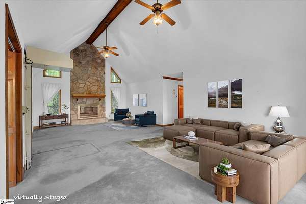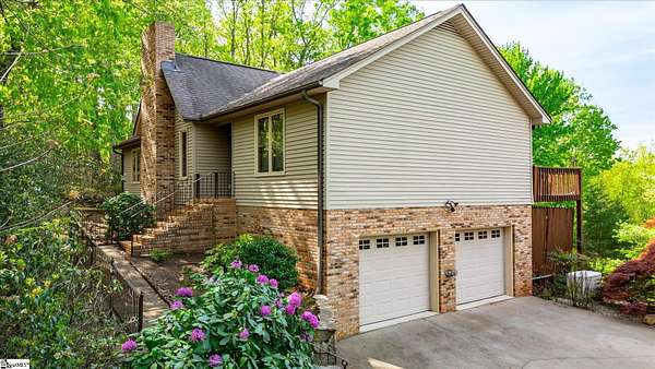 If you've been looking for your mountain retreat home, this may be the one for you. Sitting on a stunning 4.53 acres, this one-owner house is just waiting for someone to make it their own. The stone wall bordered driveway takes you to a two car garage, which connects to the finished basement space with its own full bathroom. Upstairs you'll find vaulted ceilings in the main living room with a gorgeous, masonry wood burning fireplace. The kitchen is off to the right and has wood cabinets with roll out drawers, filtered water at the sink, and a more unique feature of a hot water dispenser, perfect for an instant cup of hot tea. Another bedroom is to the right of the home, with the remaining bedrooms (including the primary) being split on the other end of the house, both featuring vaulted ceilings. The hall bathroom has a handicap accessible bathtub, and the primary bedroom has its own ensuite bathroom. There is also an elevator in the home for easy access from the basement to the main floor. Throughout the house you'll find solid wood doors and wood crown molding, and tilt out windows. Step outside on the large deck to see the picturesque views of Glassy Mountain. The lower patio overlooks the gently sloping backyard and has a screened in portion. The yard has a mix of blooming and evergreen trees and bushes and provides ample privacy. Another phenomenal feature of this home is the generator system that can power the house for a full week with the on-site propane tank. The basement would make an excellent MIL/guest suite, private bedroom, or den area. There are also additional washer/dryer hookups in the basement utility room. With NO HOA and NO RESTRICTIONS, you also have the ability to build more homes on the land, or subdivide and maximize your investment. Less than 10 minutes to North Greenville University, 20 to downtown Travelers Rest, 10 minutes from Lake Robinson, less than 5 minutes from David Jackson Park, and close proximity to Hwy 414 and Hwy 25. Don't let this one pass you by; schedule a showing today to see the limitless potential this house offers. Home to be sold AS-IS. There is additional acreage across the street that can be purchased in conjunction with this property for a group price.