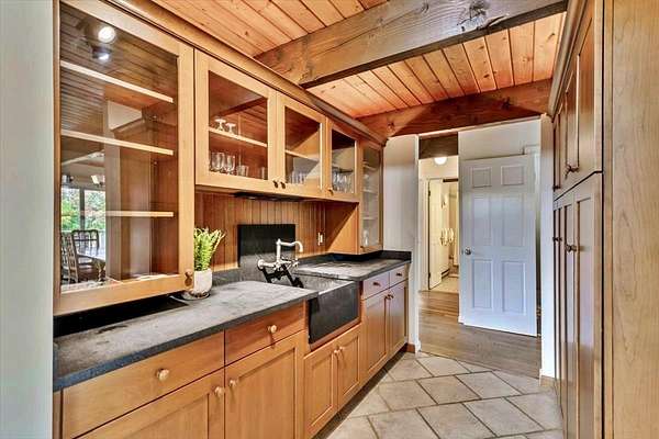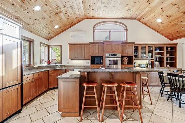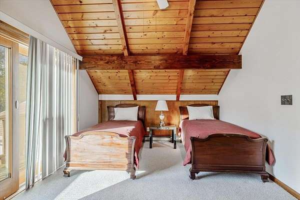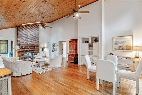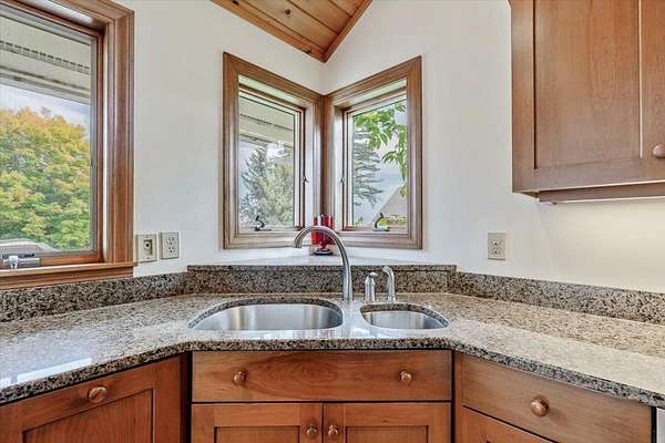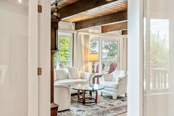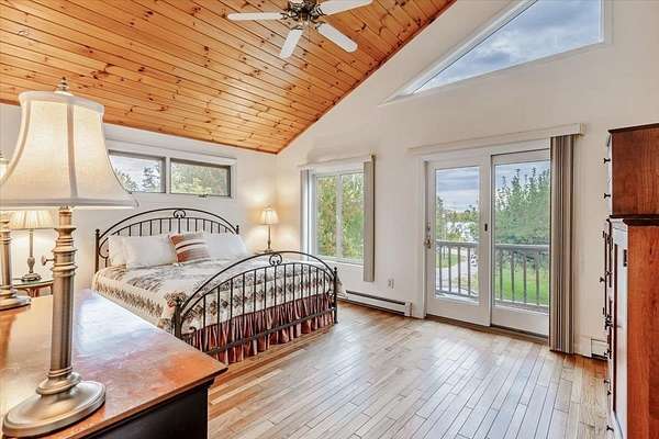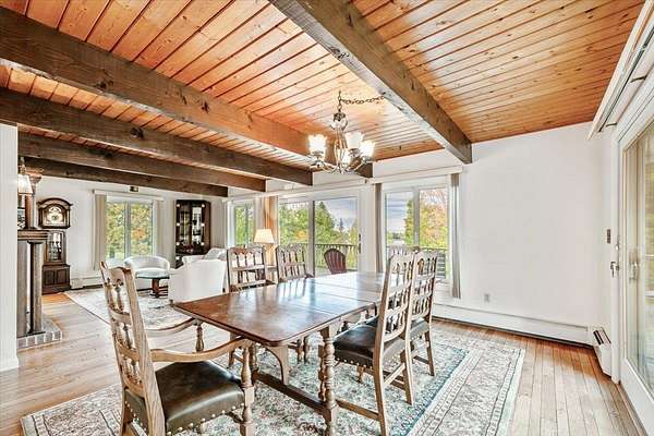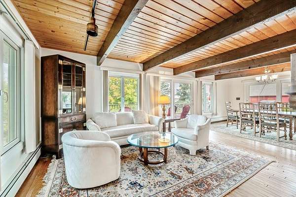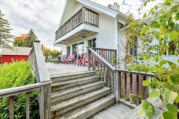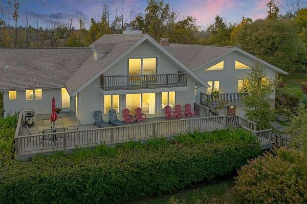 Don't miss the chance to own a private retreat on the stunning shores of Lake Champlain! This bright, expansive home offers space for living and entertaining. With 288' of lakefront, a dock and mooring, you'll have easy access to activities all year. Set on 2.45 acres with fruit trees, mature shrubs, and perennials, the property offers year-round beauty. The main floor has an updated eat-in kitchen with granite countertops, custom cherry cabinets, high-end appliances, and doors to the back deck. A butler's pantry with soapstone counters and sink provides additional prep and storage space. The dining/living room has a gas fireplace, perfect for winter nights, while offering lake views and deck access for outdoor living. French doors lead to the great room, where soaring ceilings, built-ins, and expansive views steal the show. A 2-sided wood-burning fireplace anchors this space, complemented by a sunroom with views of the landscaped back yard. This floor also offers 4 bedrooms and 2 bathrooms, including a primary bedroom with lake views and balcony. Upstairs, another large bedroom features balconies, lake views, and a full bath. The lower level includes a spacious media room, a 3/4 bath, a library with built-in bookcases, and an office or craft room. There's also a large laundry room and abundant storage space. This Lake Champlain home is a rare gem, blending elegance, spaciousness, and natural beauty into one extraordinary package. Make your dream of lakefront living a reality!