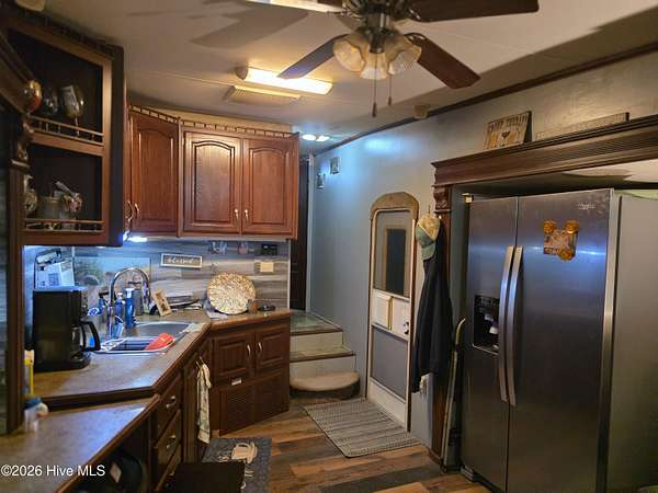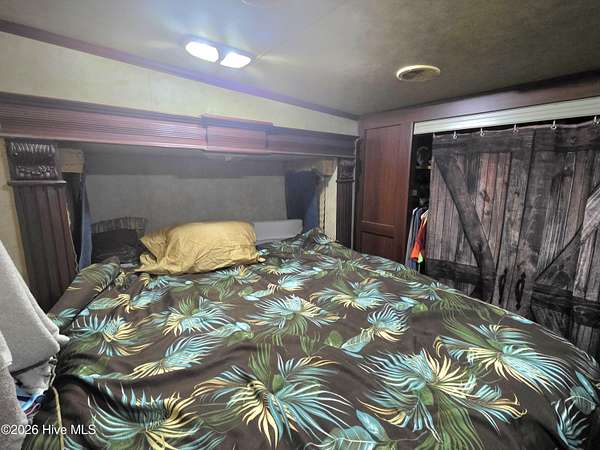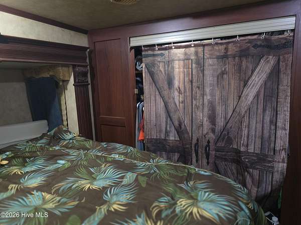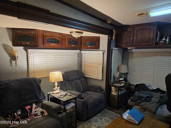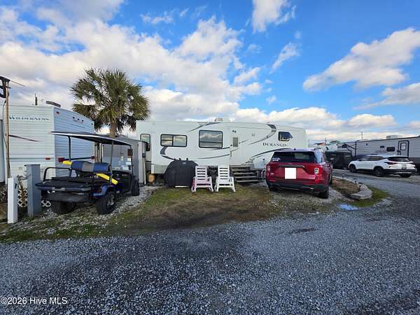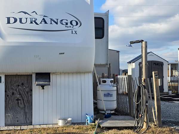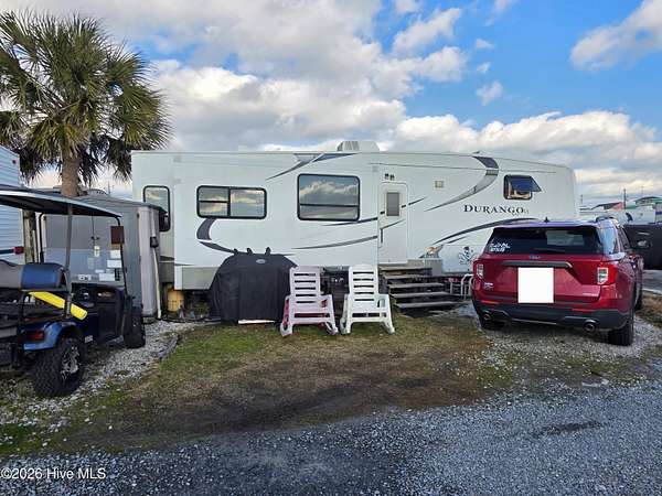 Welcome to coastal living at 120 Quarterdeck Street in North Topsail Beach, located within the sought-after Rogers Bay Campground. This well-appointed property features a 2008 KZ Durango 32-foot RV that's been thoughtfully upgraded for comfort and extended stays. Inside, you'll find true household conveniences, including a full electric stove and oven, household-size side-by-side refrigerator, and a residential-style toilet. The RV offers a private one-bedroom layout, a cozy fireplace, and multiple climate upgrades-highlighted by a new 2025 rooftop A/C unit, 2024 furnace, plus additional window A/C units for extra cooling on warm coastal days. The lot is efficiently configured to allow parking for one vehicle and one golf cart, making beach and campground access easy. A storage shed provides convenient space for beach gear, tools, or outdoor equipment. Whether you're looking for a low-maintenance coastal getaway, a seasonal retreat, or a comfortable campground residence, this property delivers functionality, upgrades, and location-all just minutes from the sand and water.